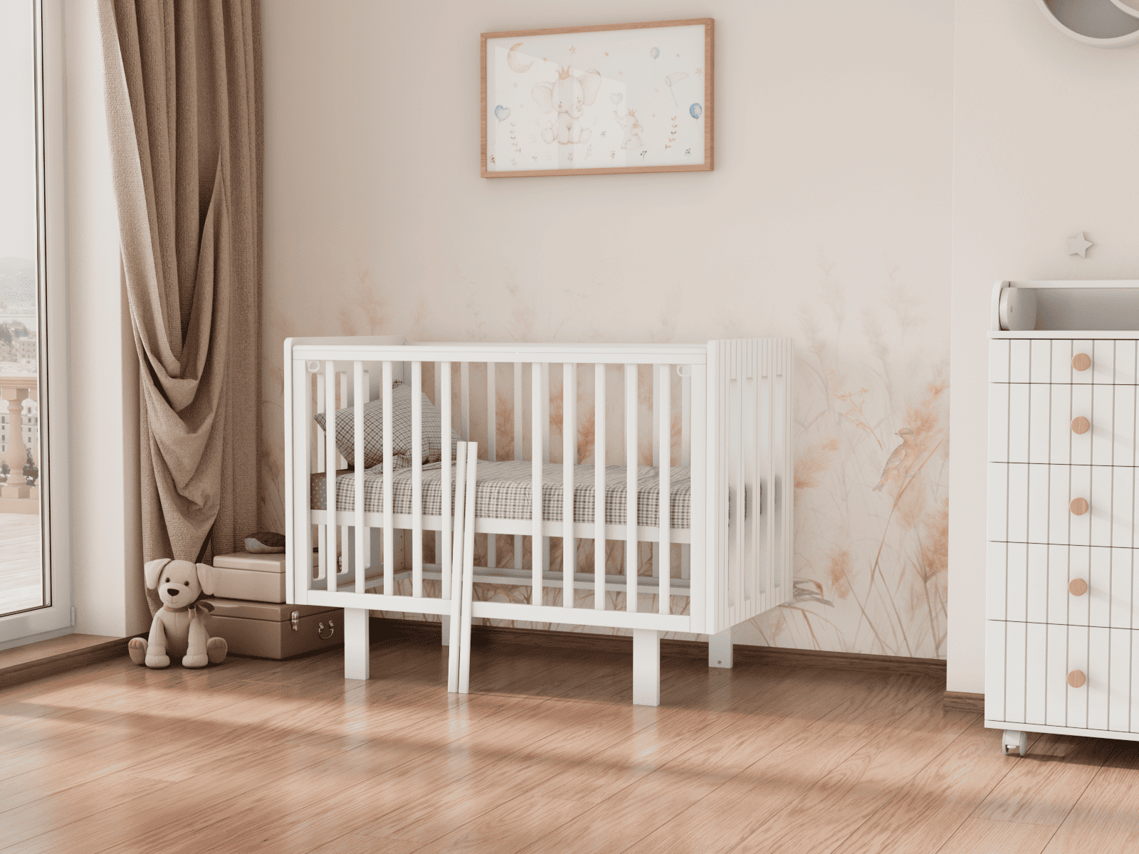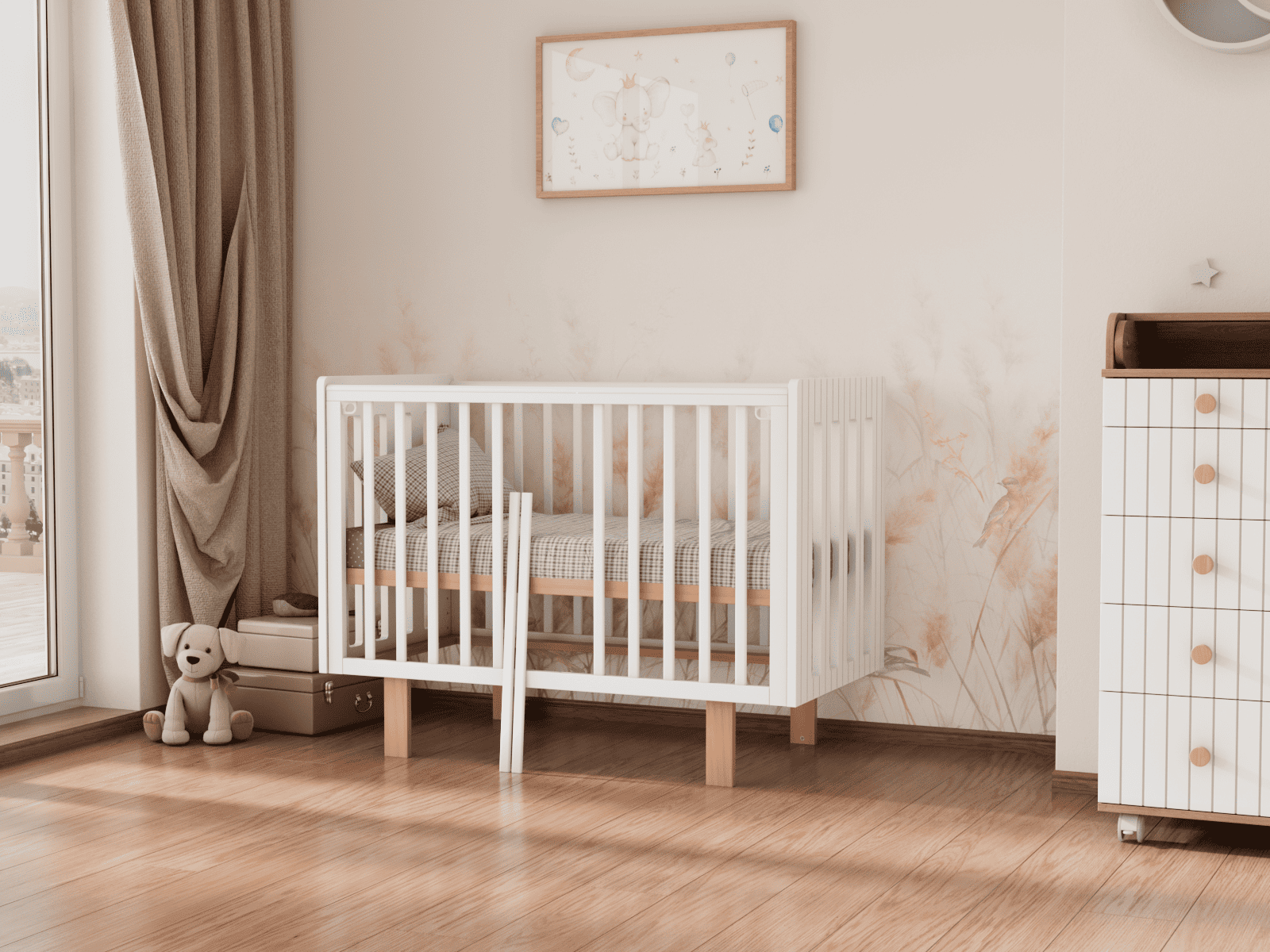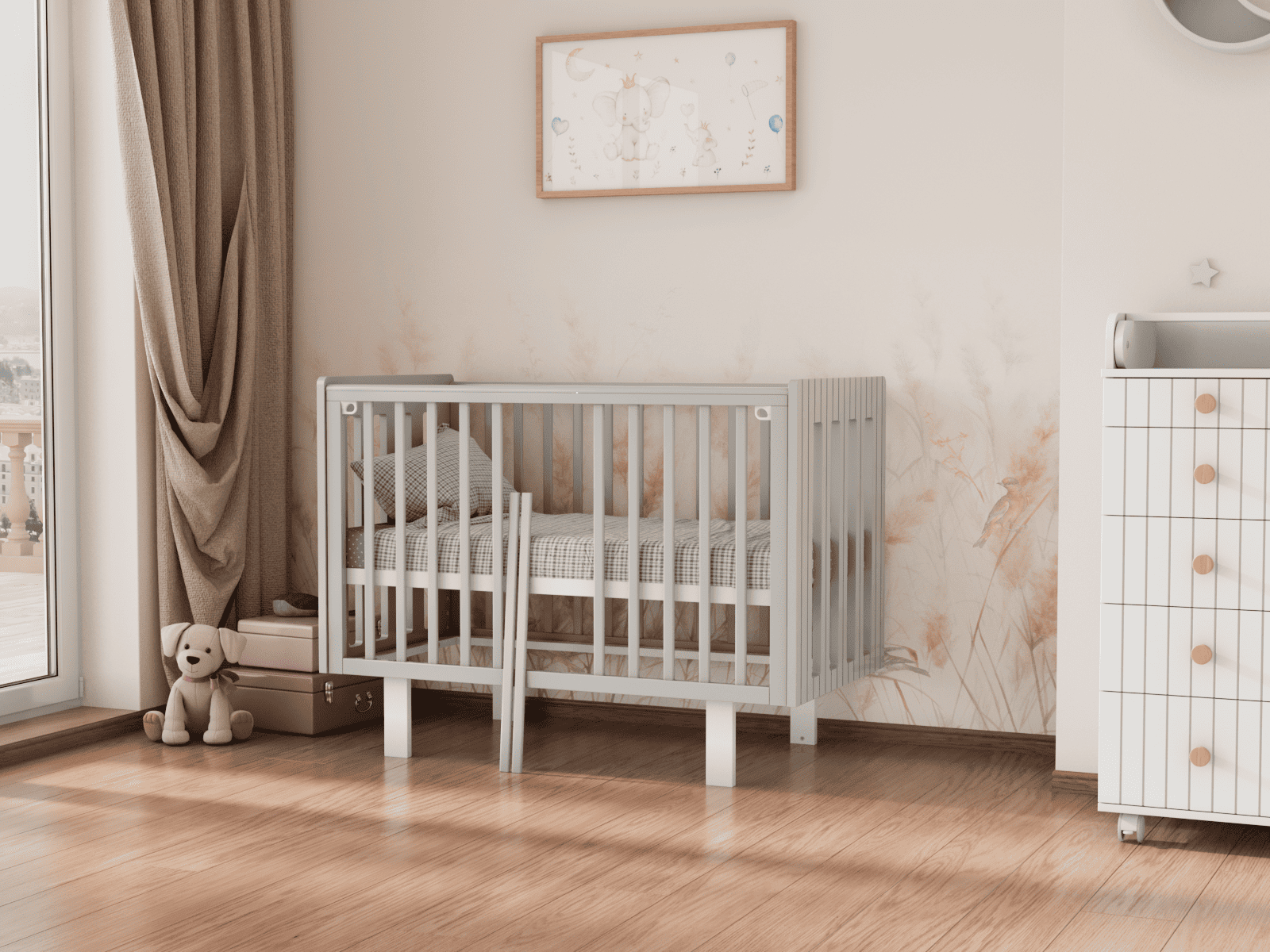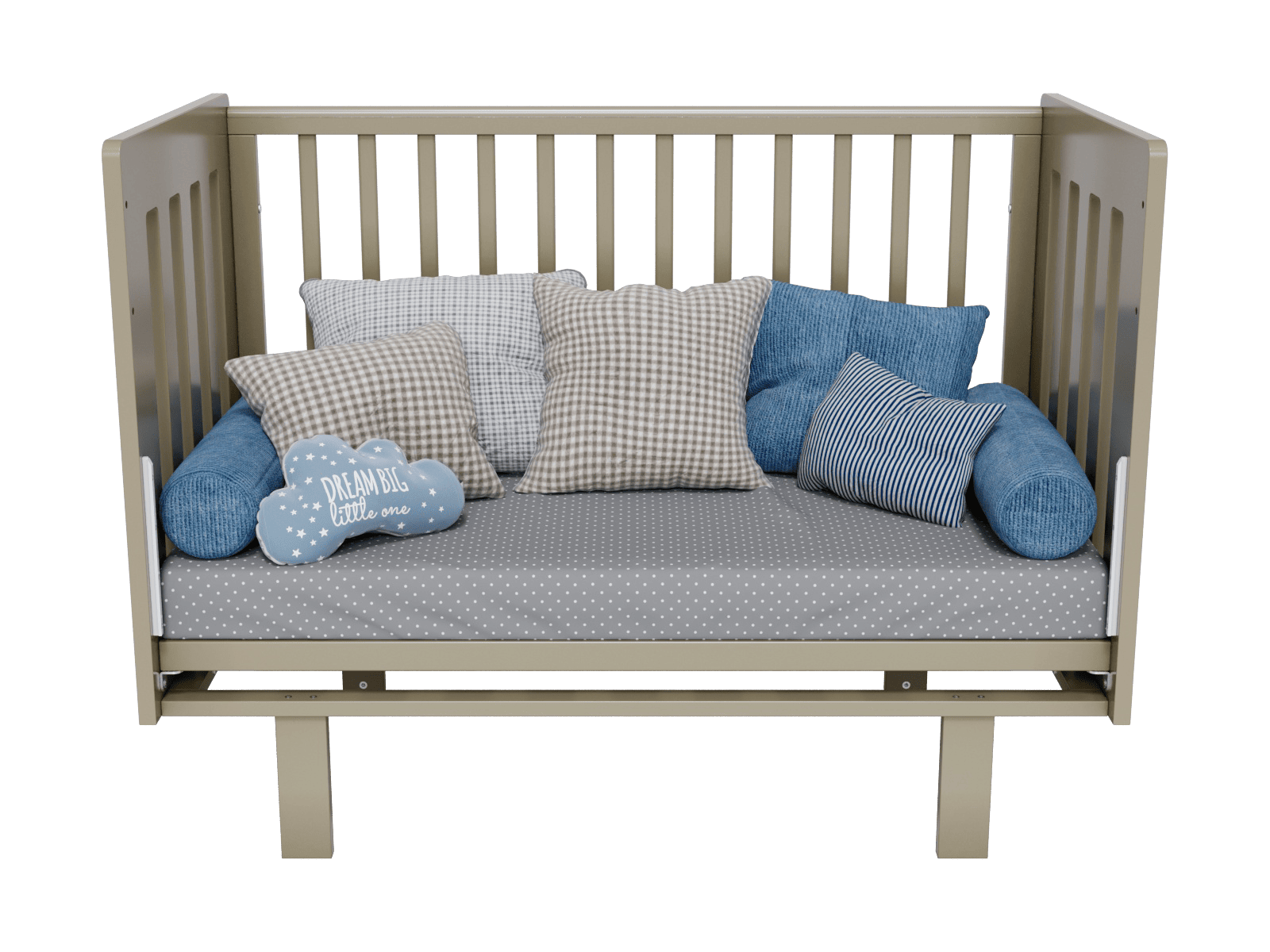 4 уровня регулировки высоты ложа — комфортно на разных этапах роста ребёнка и удобно для подстройки под высоту родительской кровати.