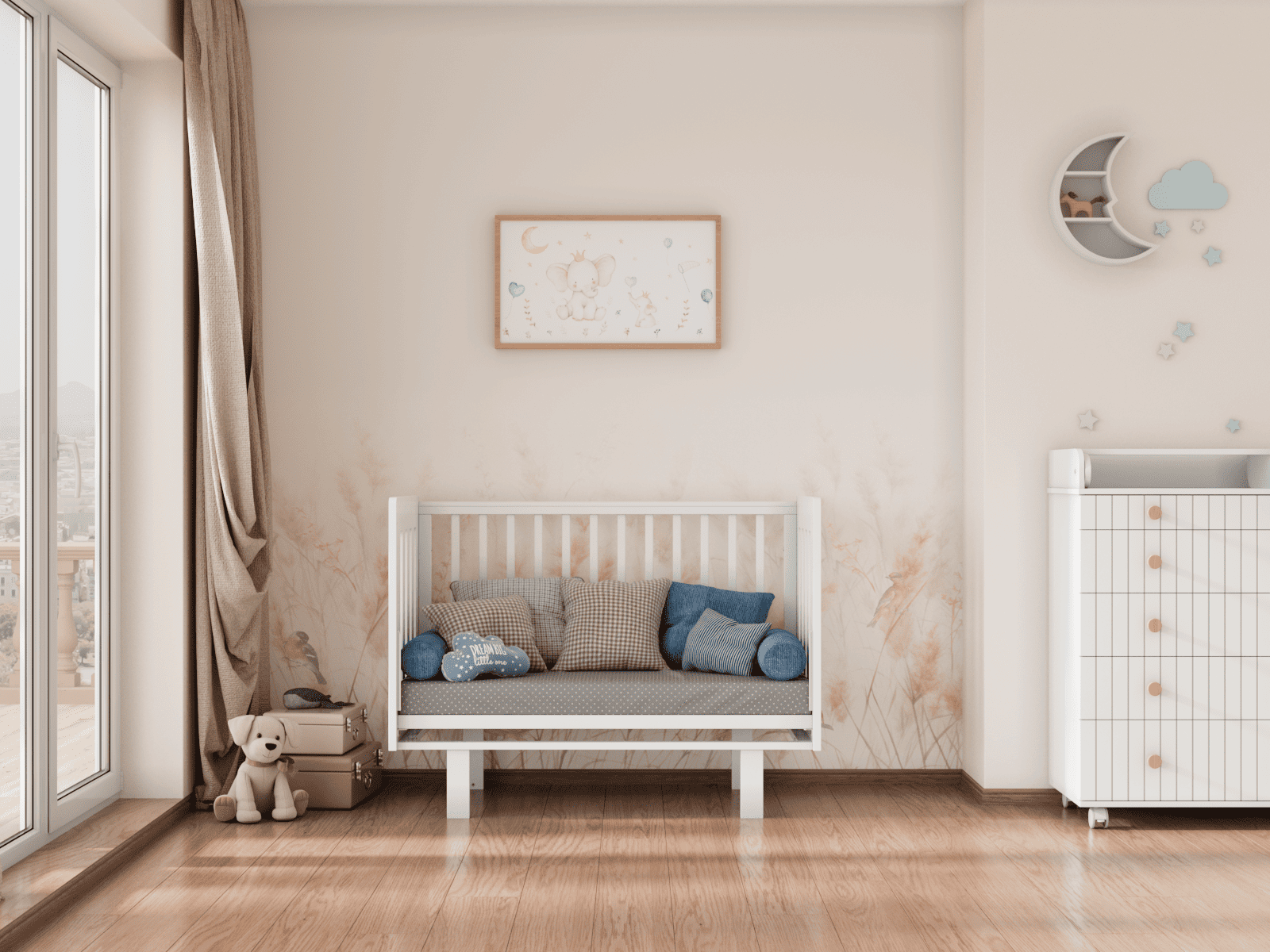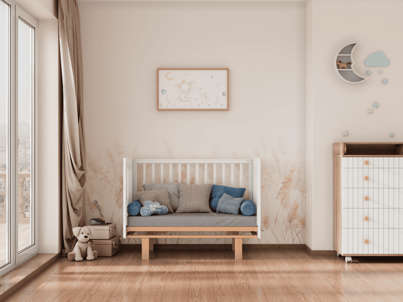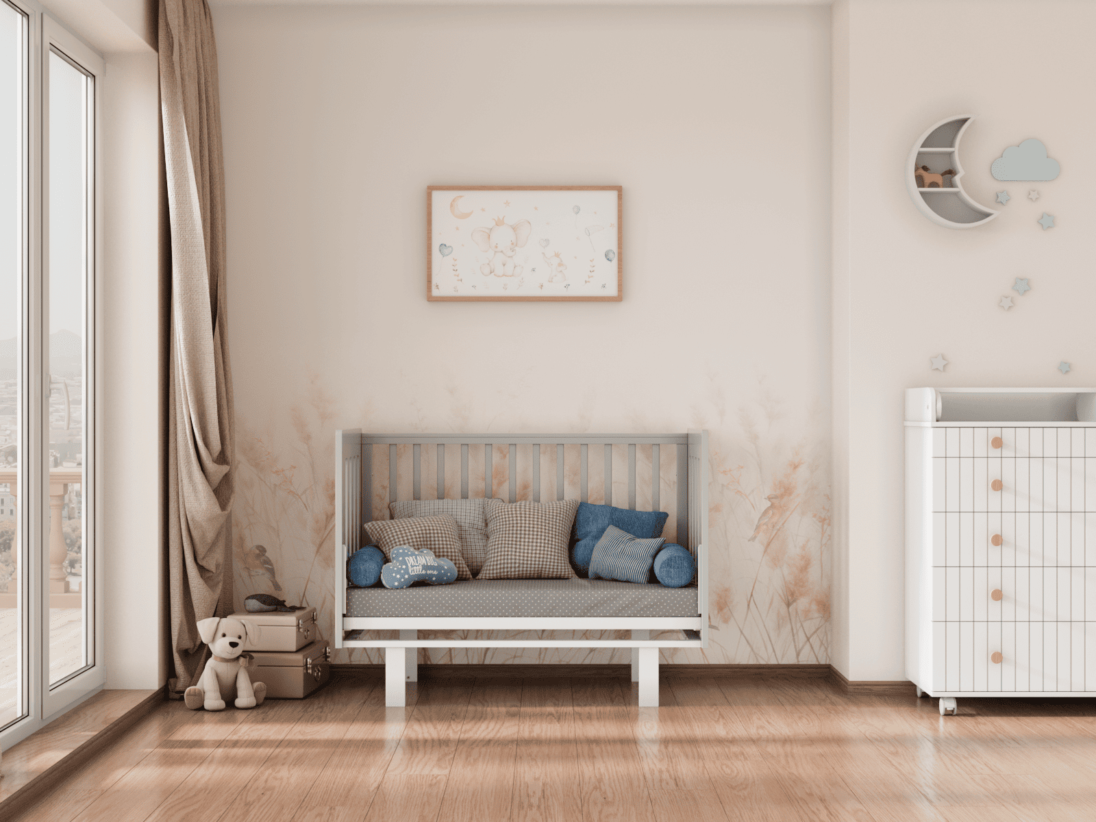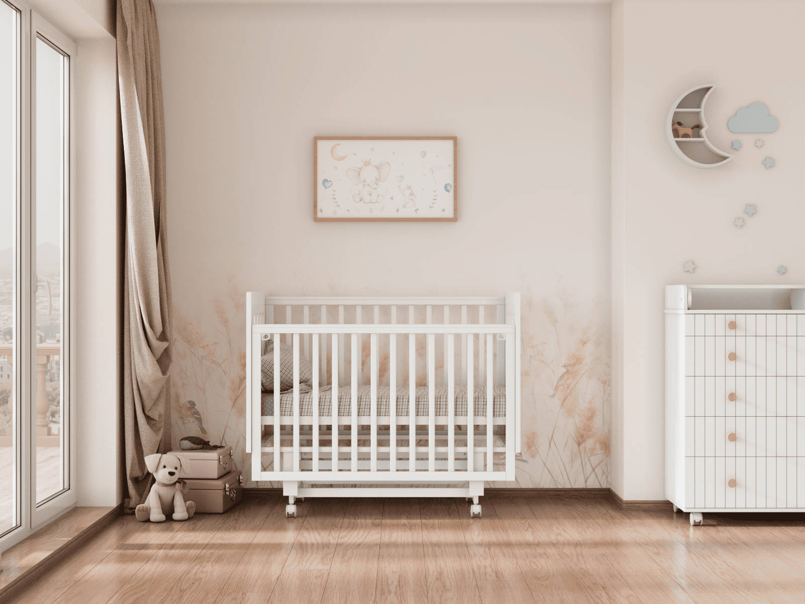 4 уровня регулировки высоты ложа — комфортно на разных этапах роста ребёнка и удобно для подстройки под высоту родительской кровати.
