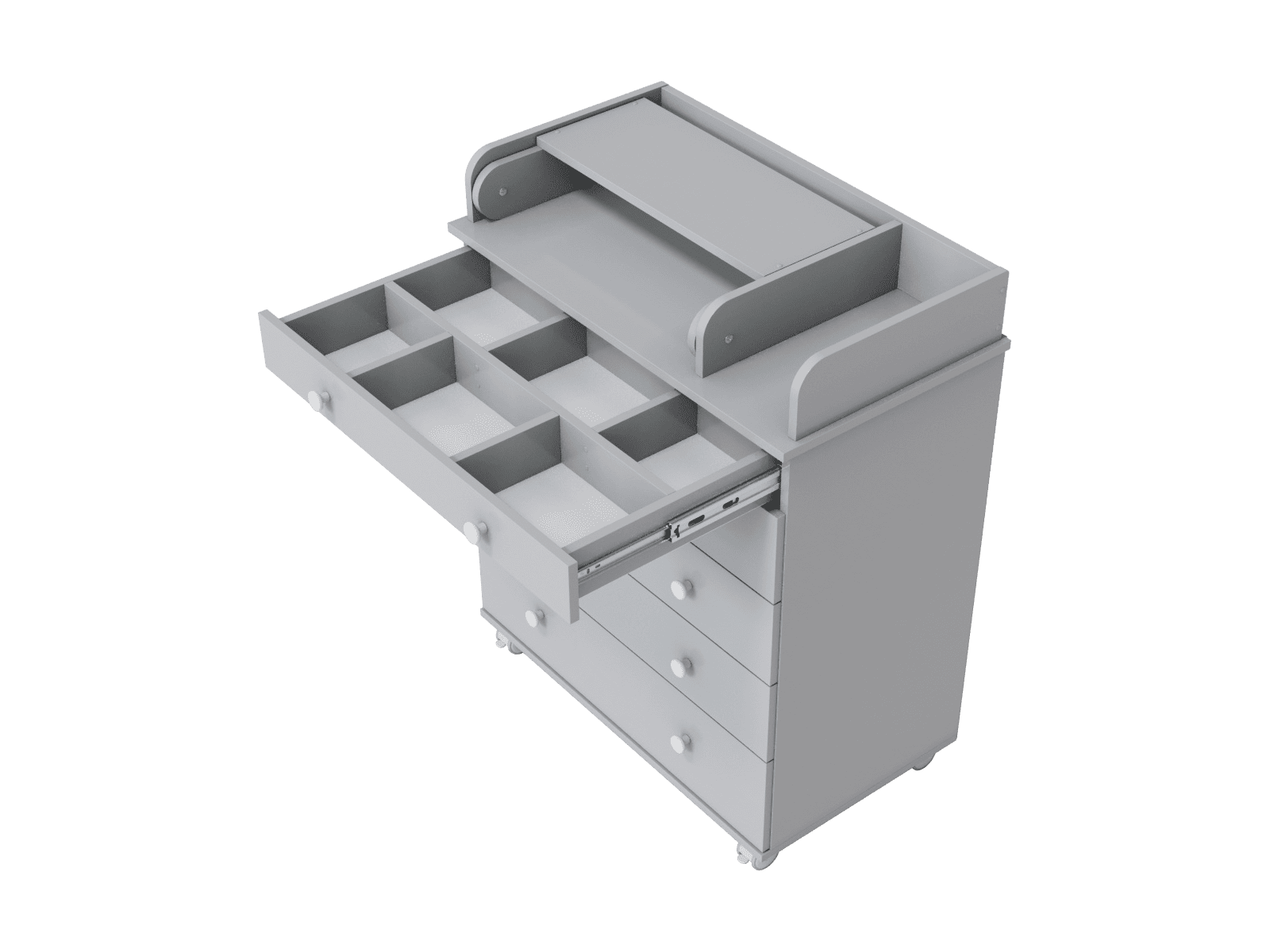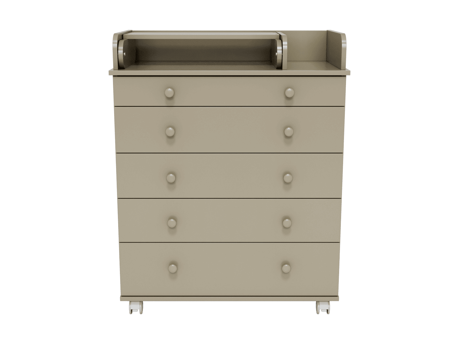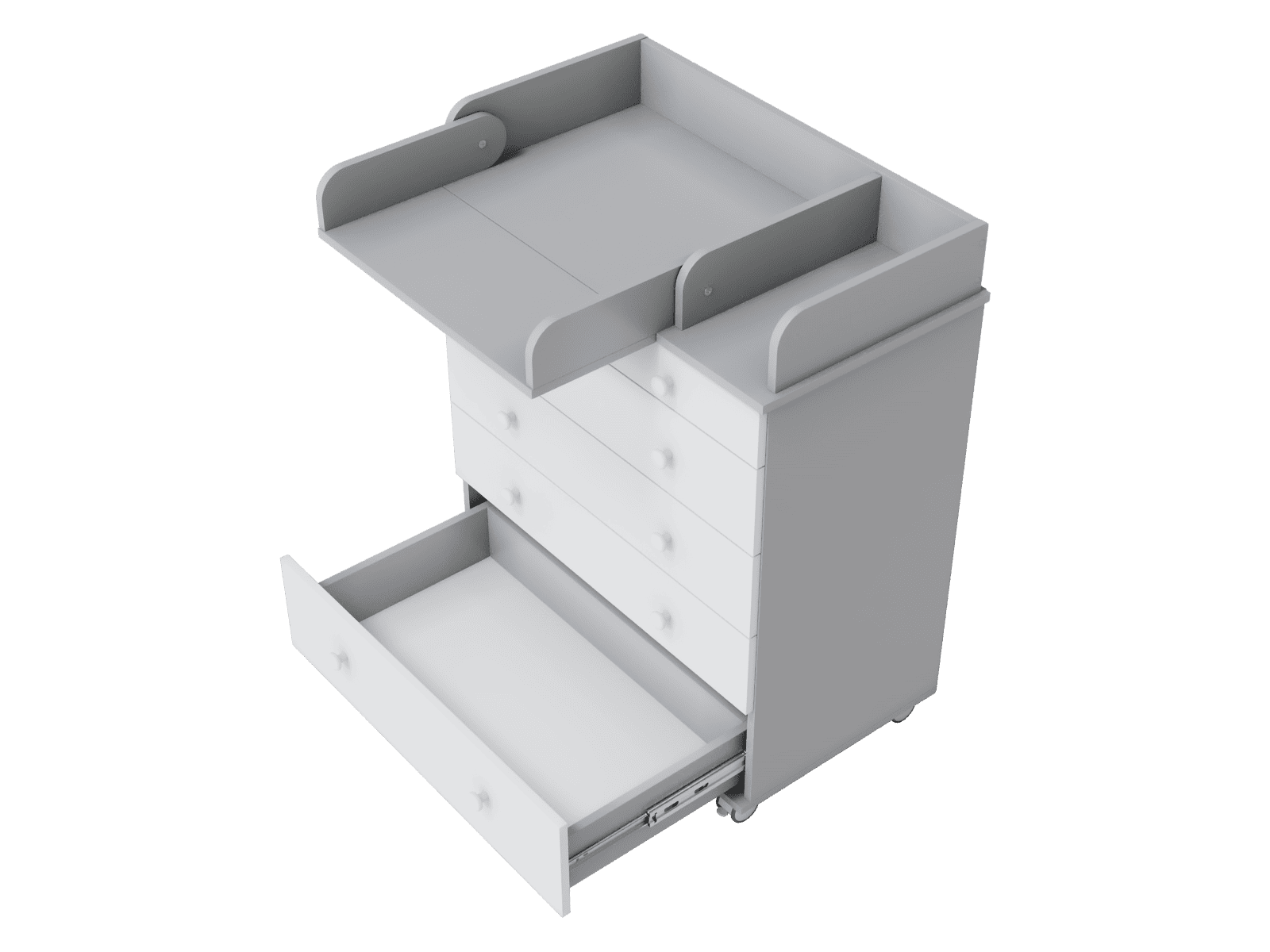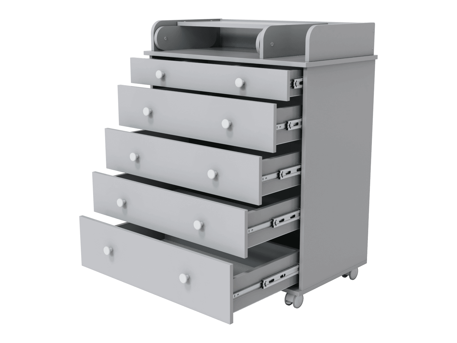 Tesoro Maximus Premium — это комод с фасадами из высококачественной МДФ в премиум‑версии и дополнительная (пятая) шуфлядка с практичным органайзером, а также откидная пеленальная доска с выделенным местом для гигиенических принадлежностей.
