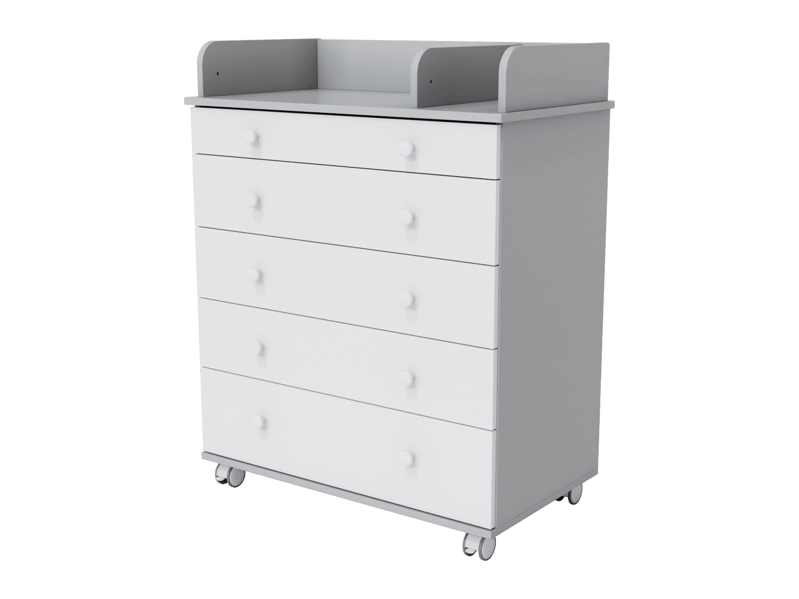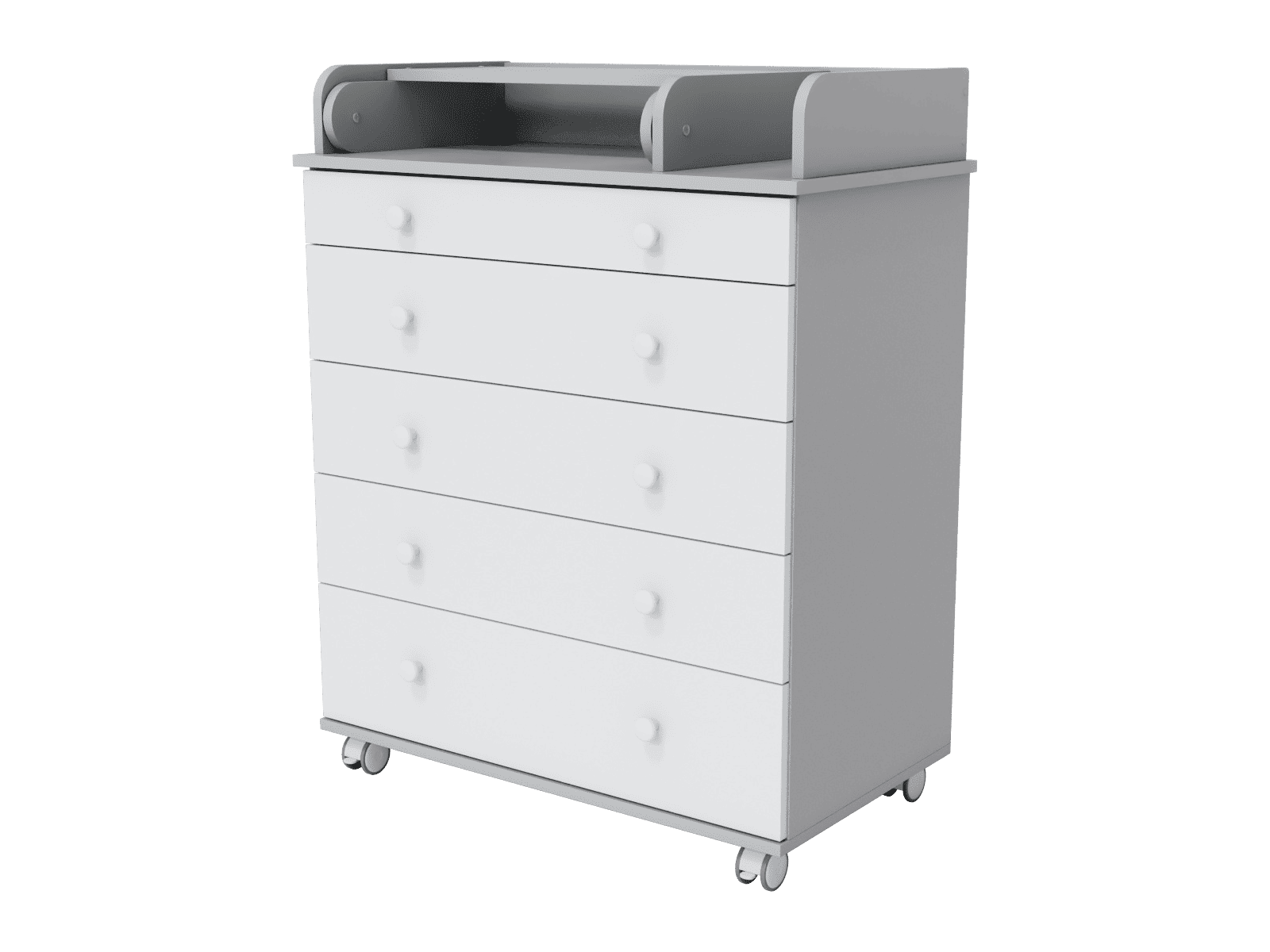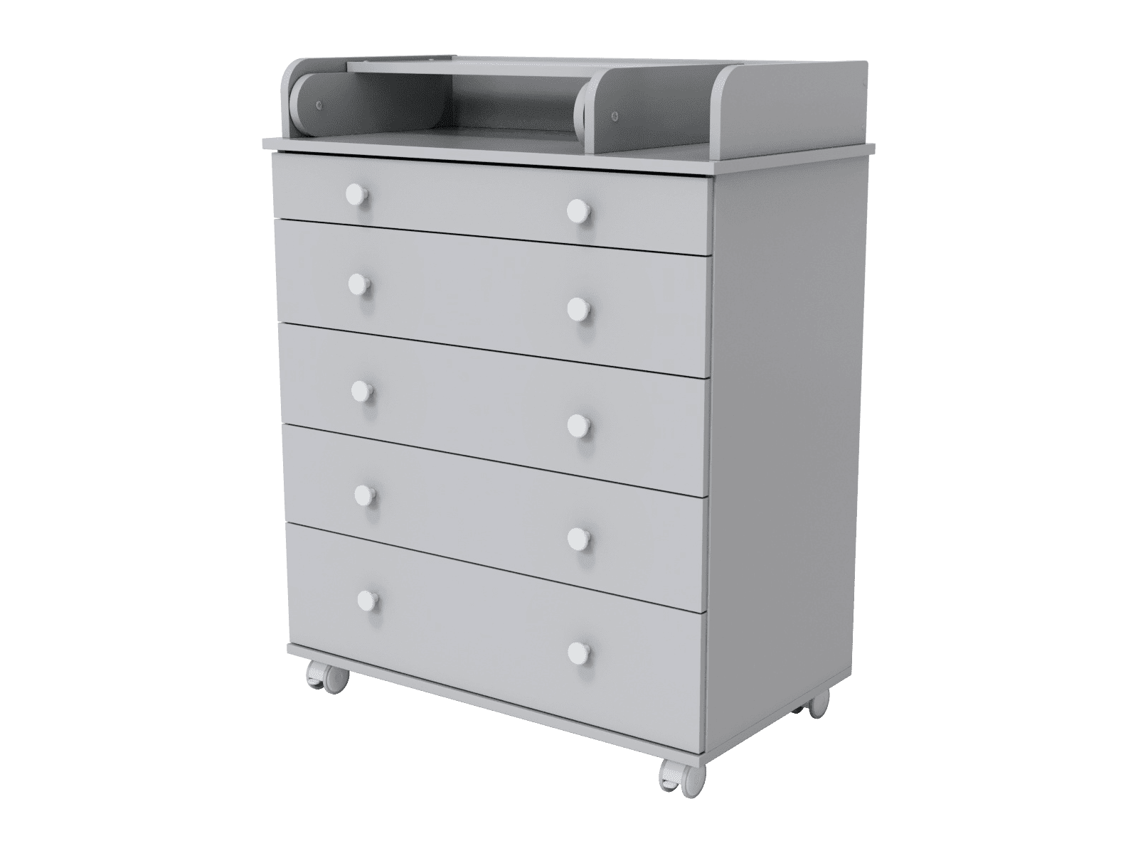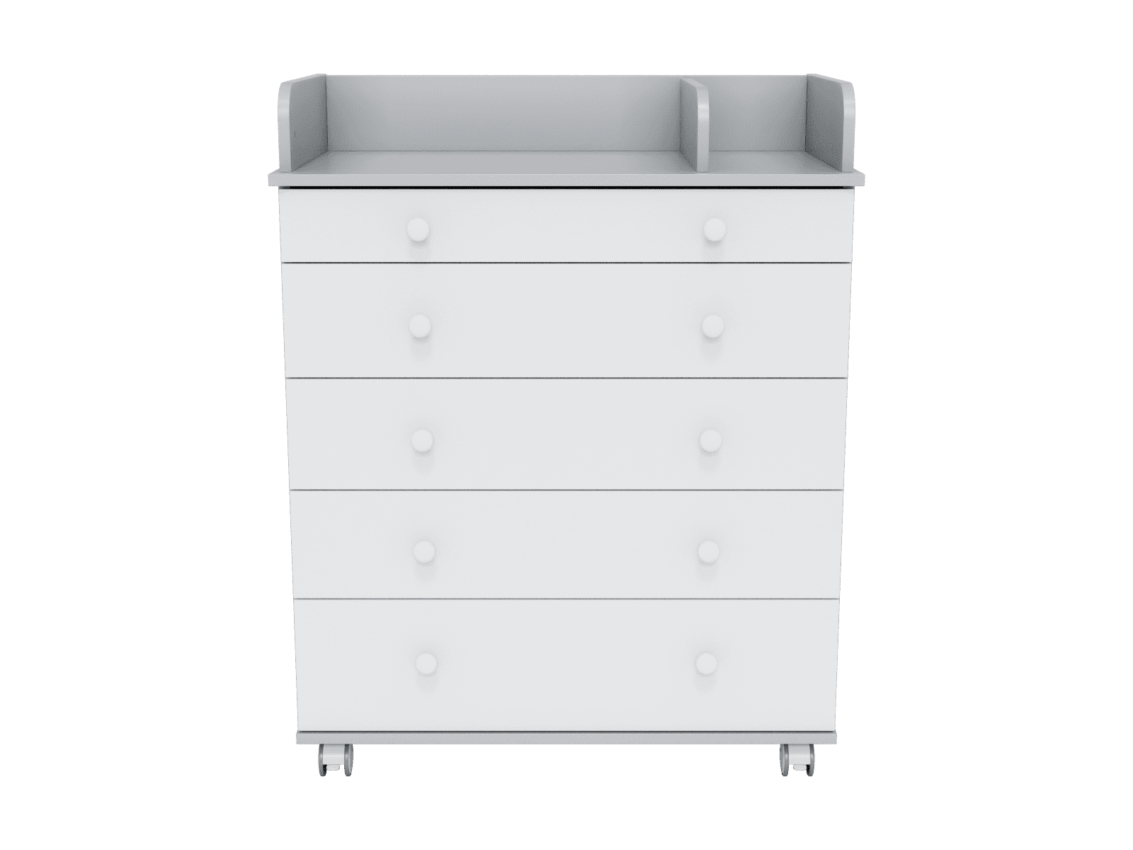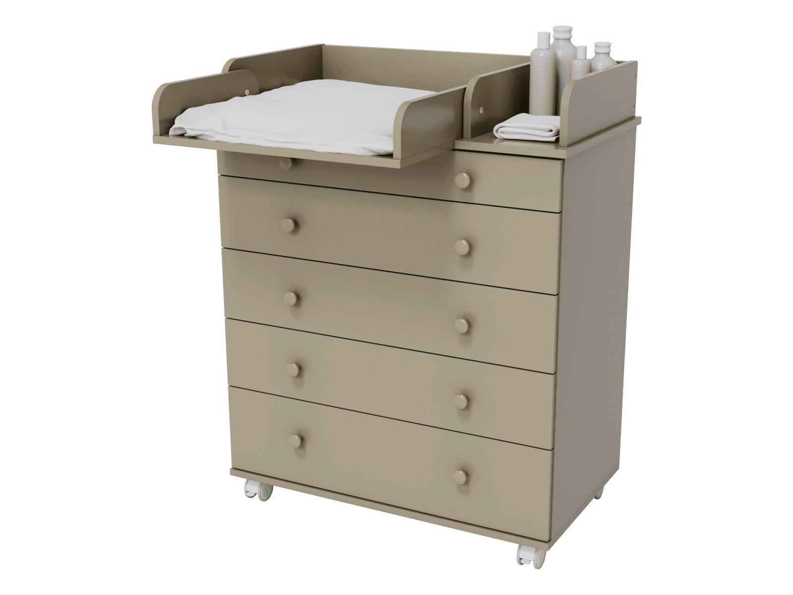 Tesoro Maximus Premium — это комод с фасадами из высококачественной МДФ в премиум‑версии и дополнительная (пятая) шуфлядка с практичным органайзером, а также откидная пеленальная доска с выделенным местом для гигиенических принадлежностей.