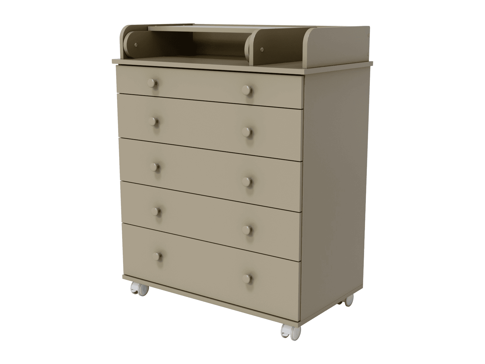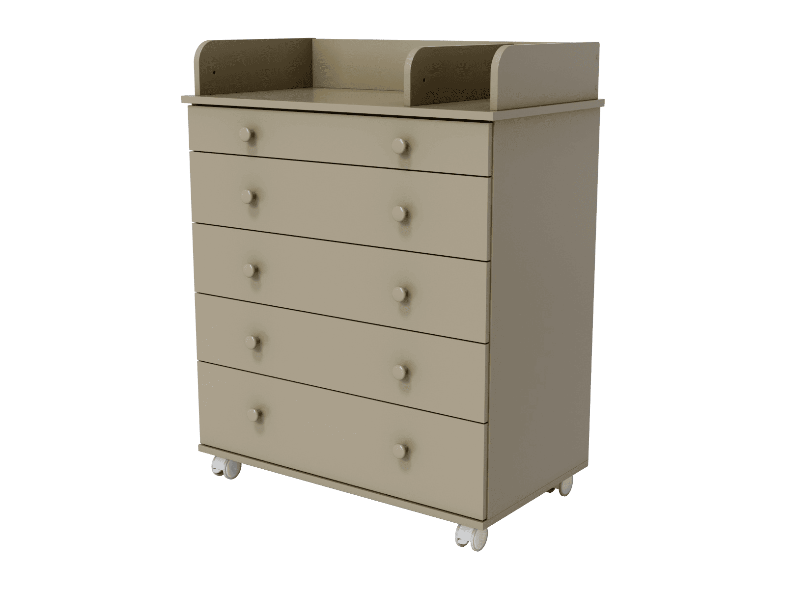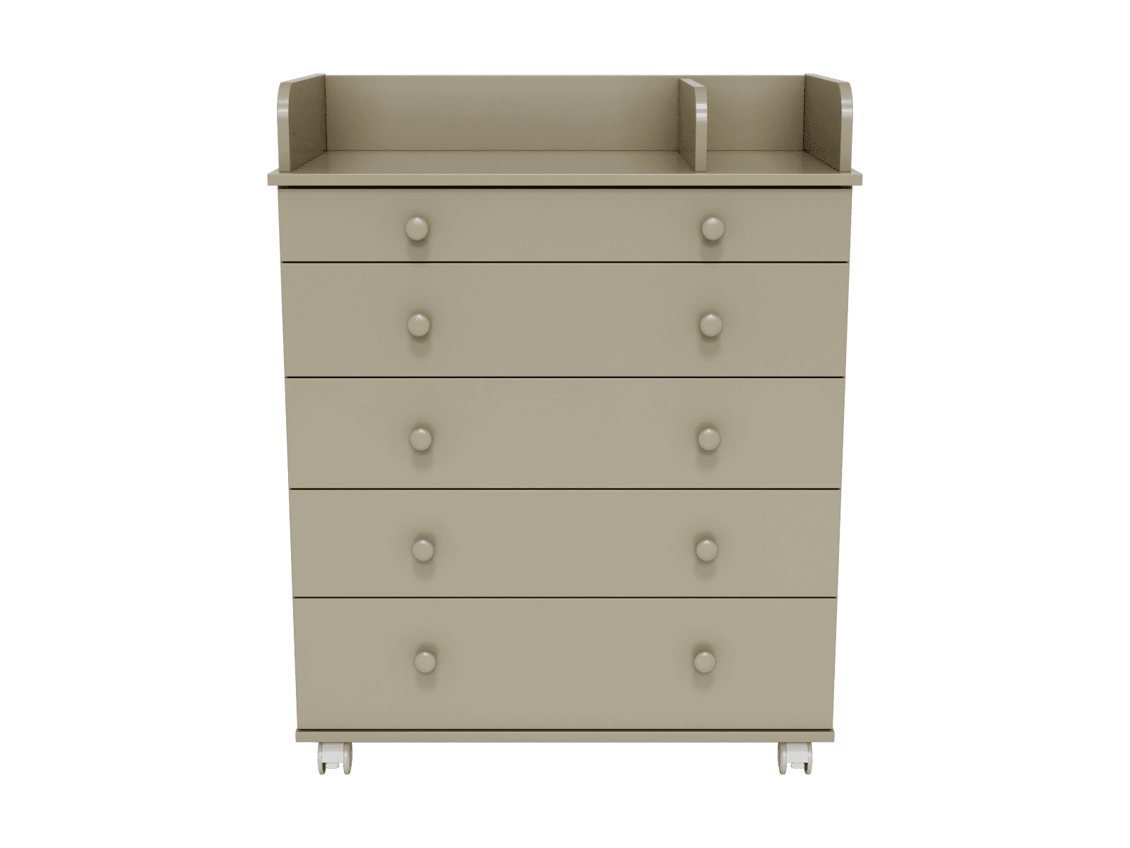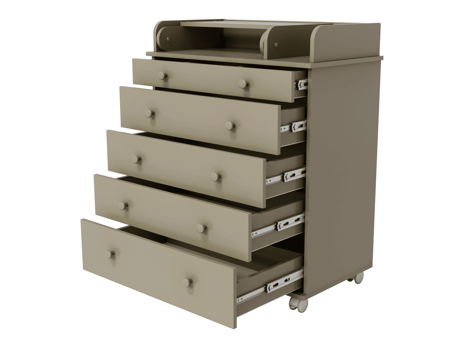 Tesoro Maximus Premium — это комод с фасадами из высококачественной МДФ в премиум‑версии и дополнительная (пятая) шуфлядка с практичным органайзером, а также откидная пеленальная доска с выделенным местом для гигиенических принадлежностей.
