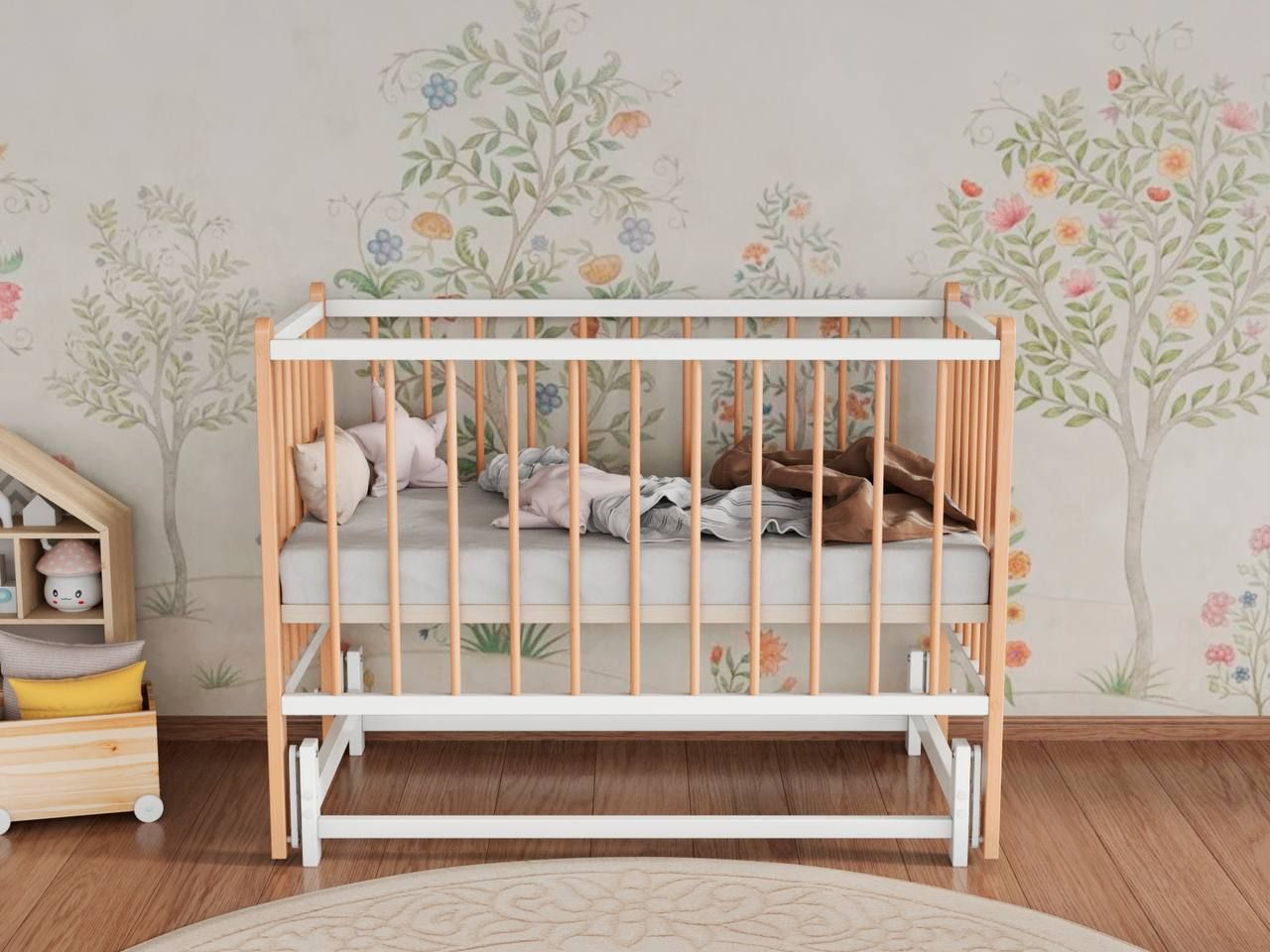 Поперечный маятниковый механизм помогает мягко укачивать малыша, не вставая с кровати, что особенно удобно при совместном сне и ночных пробуждениях.