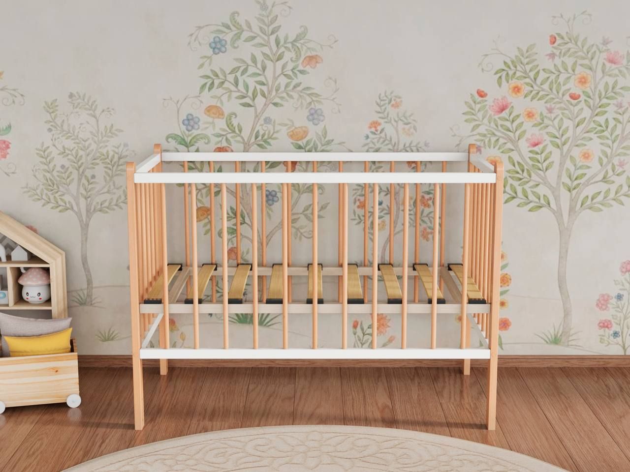 Безопасное расстояние между ламелями 7,5 см снижает риск того, что ручки или ножки малыша застрянут между рейками.