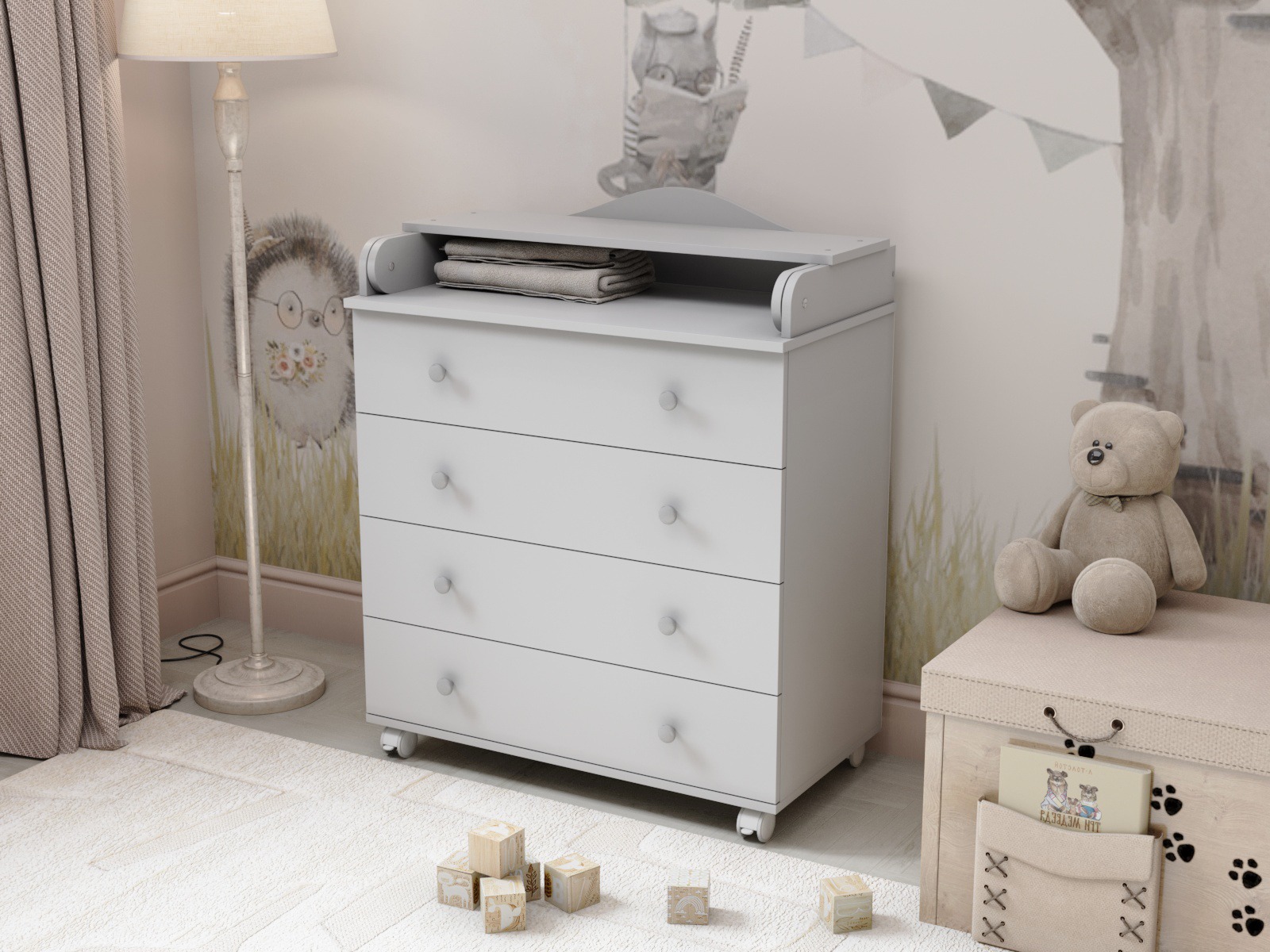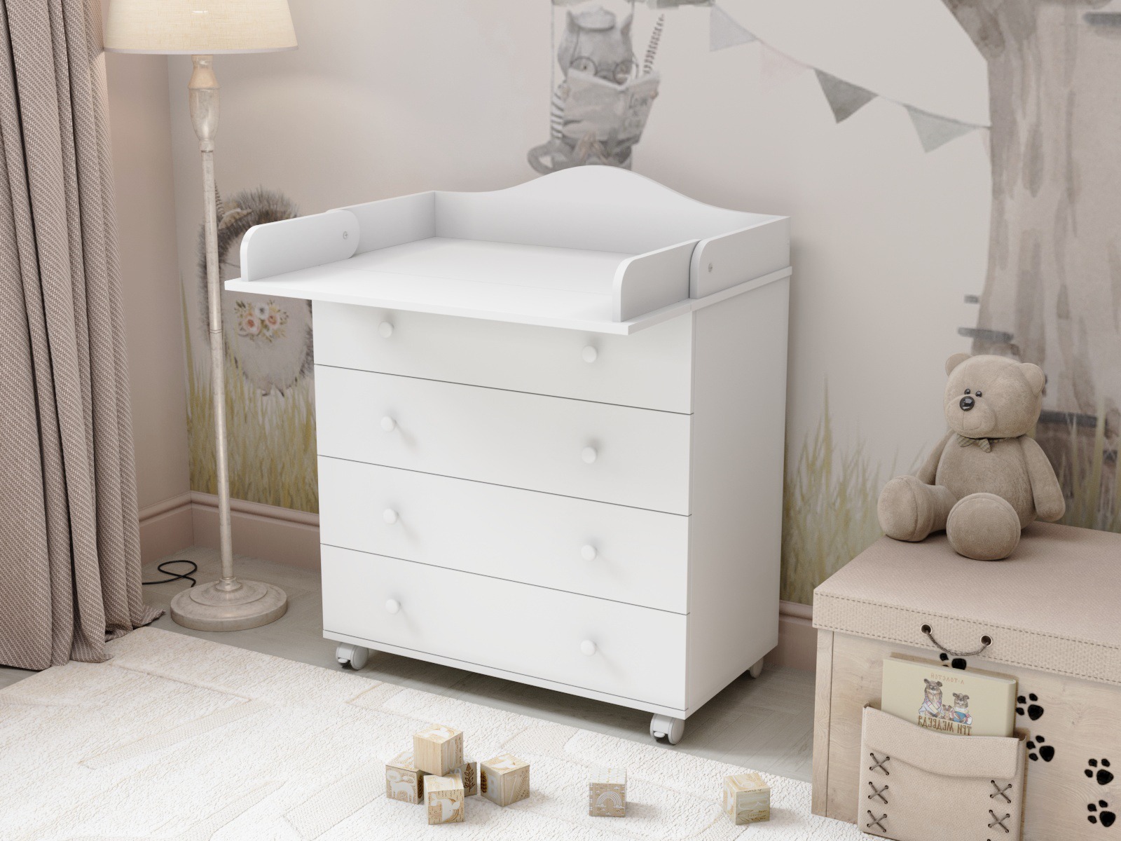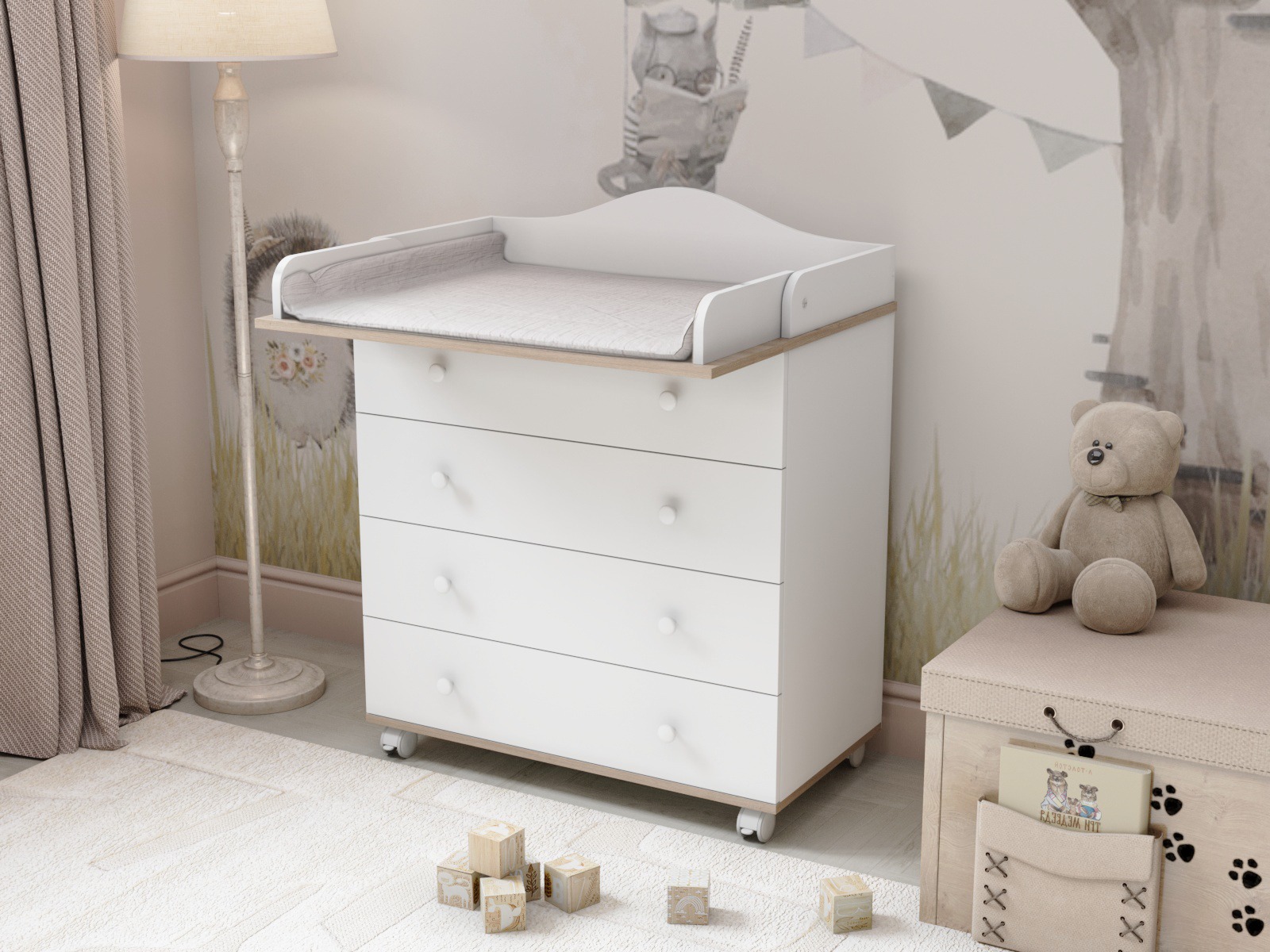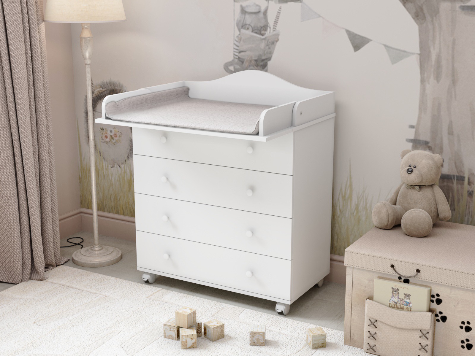 — Пеленальный столик с раскладной конструкцией позволяет элементарно превратить комод в классический. Столик снимается и легко раскладывается.