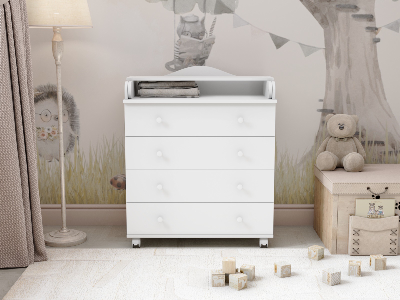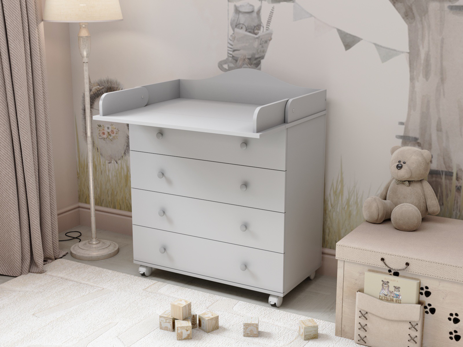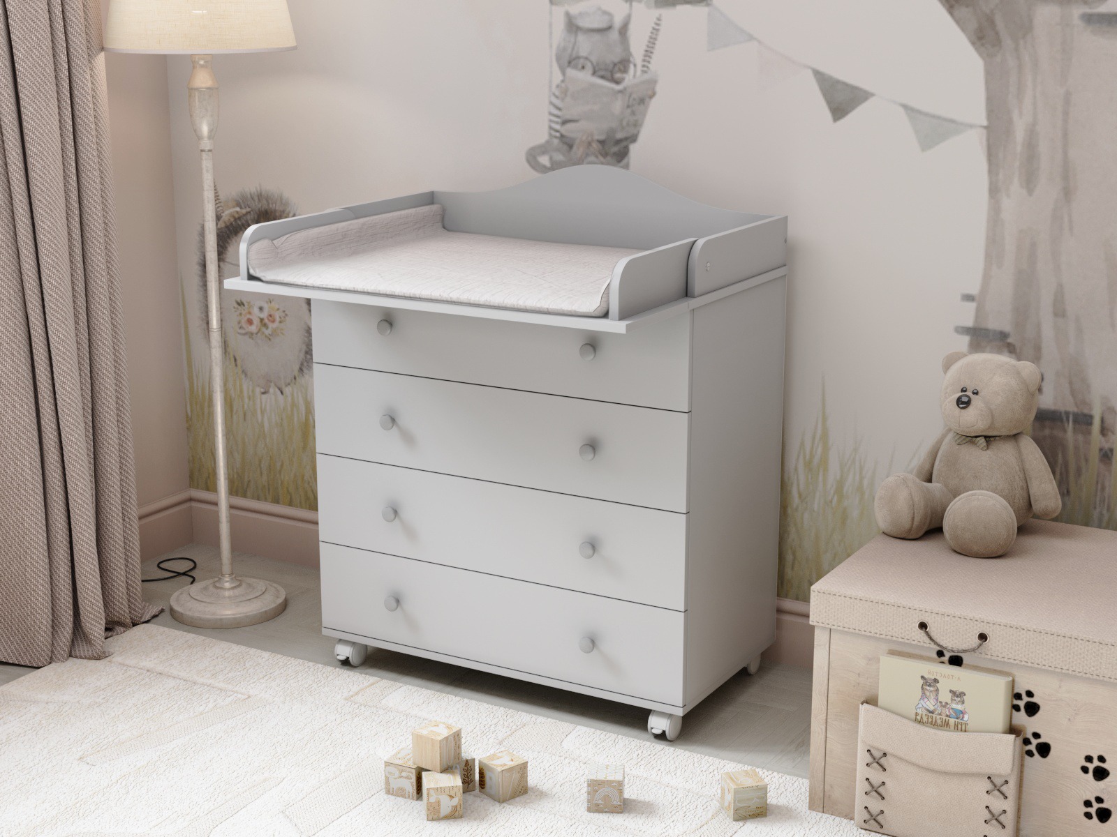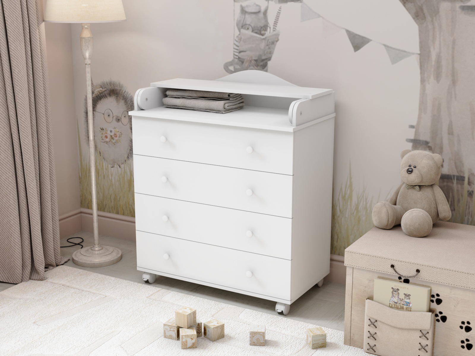 — Пеленальный столик с раскладной конструкцией позволяет элементарно превратить комод в классический. Столик снимается и легко раскладывается.