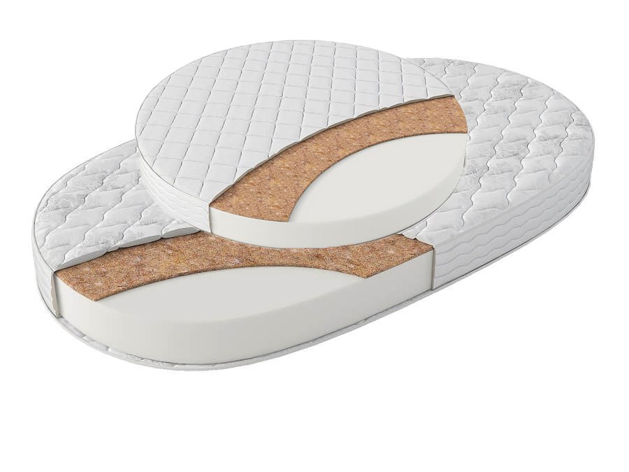 — Наполнитель (сторона 1): латексированное кокосовое волокно (10 мм). Кокосовое волокно — обладает уникальными свойствами, которые нашли широкое применение в производстве матрасов. Кокосовая койра — один из самых натуральных, экологичных и долговечных материалов. Он не подвержен гниению за счет наличия в нем полимера лигнина, не вызывает аллергии, отлично вентилируется. Поскольку его волокна не впитывают влагу и моментально высыхают, размножение бактерий и пылевых клещей в кокосовой койре полностью исключено. Использование латекса увеличивает долговечность кокосового волокна, износоустойчивость, стойкость к деформации и механическим повреждениям, а также повышает упругость и эластичность. Благодаря уникальным свойствам матрасы из латексированного кокосового волокна получили высокую популярность в качестве матрасов для новорожденных.