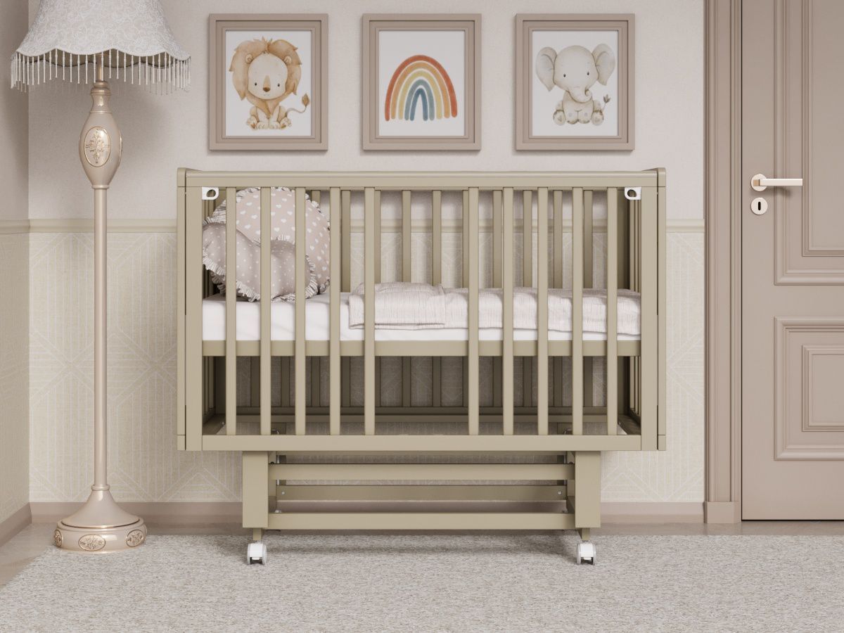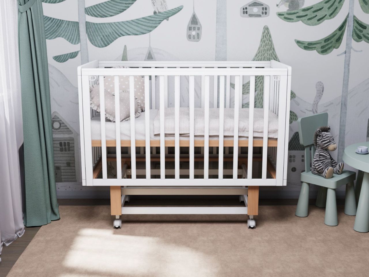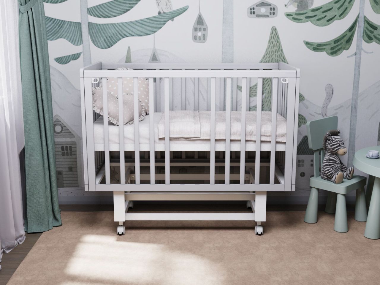 Система «Автостенка» позволяет легко опускать или снимать боковую стенку — кроватку можно использовать как приставную к родительской. - Предусмотрено 4 уровня регулировки высоты ложа (35, 41, 47, 54 см с учётом колёс), что удобно на разных этапах развития малыша.