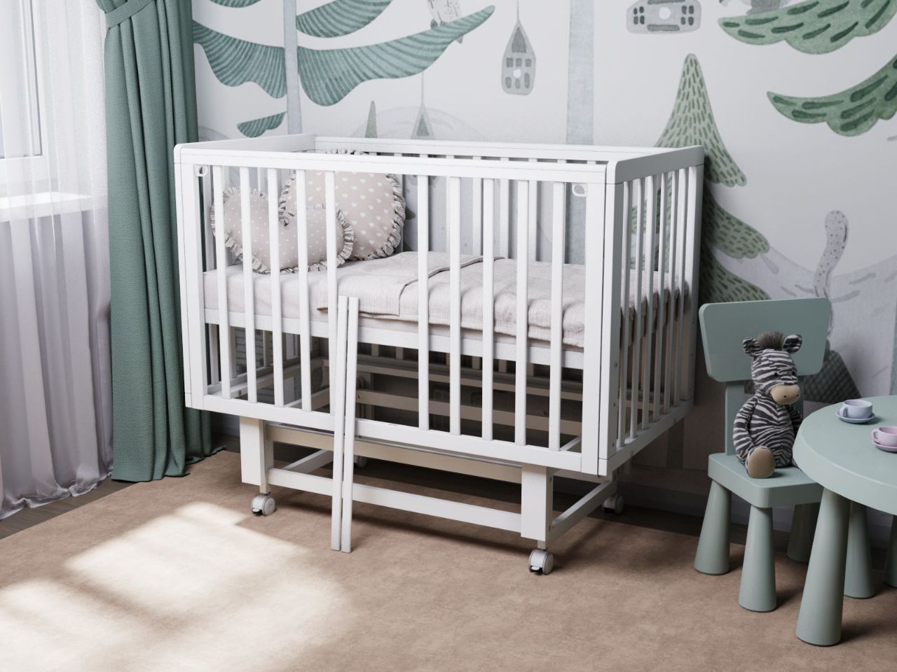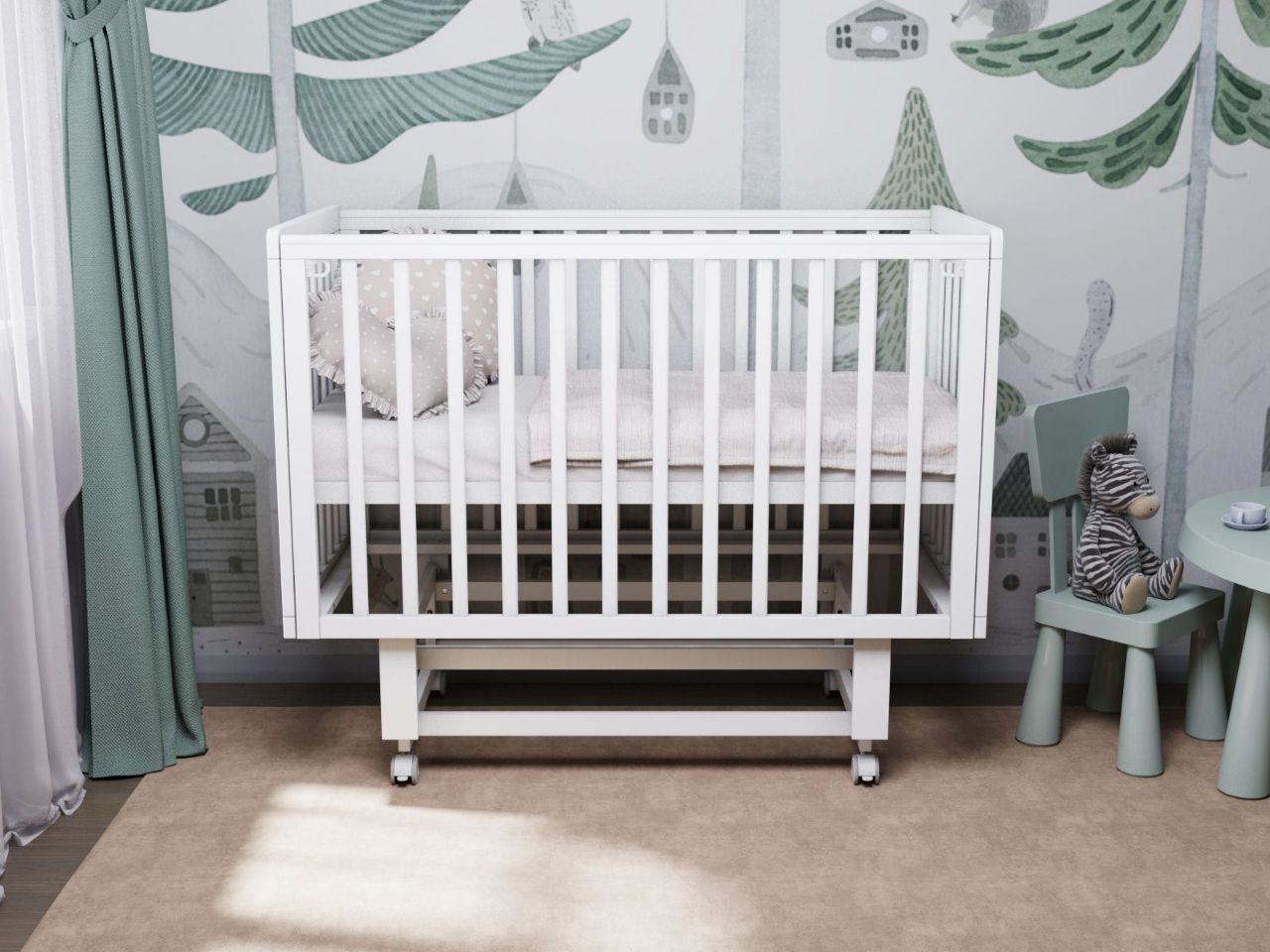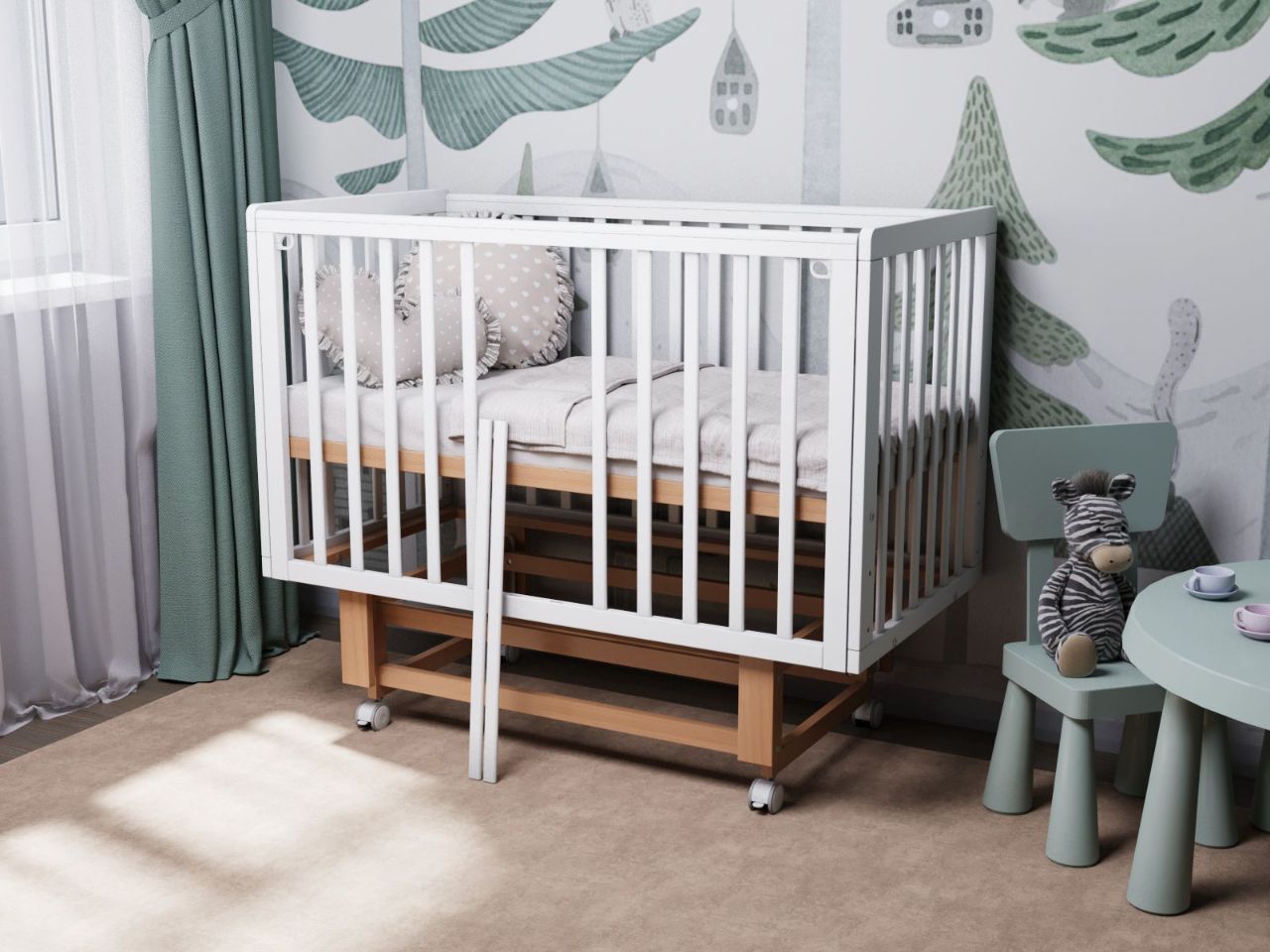 Система «Автостенка» позволяет легко опускать или снимать боковую стенку — кроватку можно использовать как приставную к родительской. - Предусмотрено 4 уровня регулировки высоты ложа (35, 41, 47, 54 см с учётом колёс), что удобно на разных этапах развития малыша.