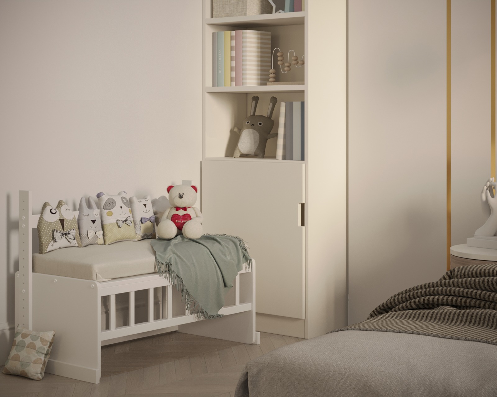 - Диванчик с с мягким сиденьем. Отлично подойдет для отдыха и игр.