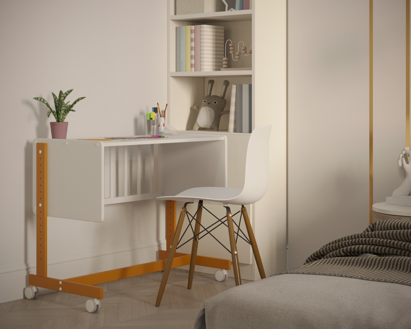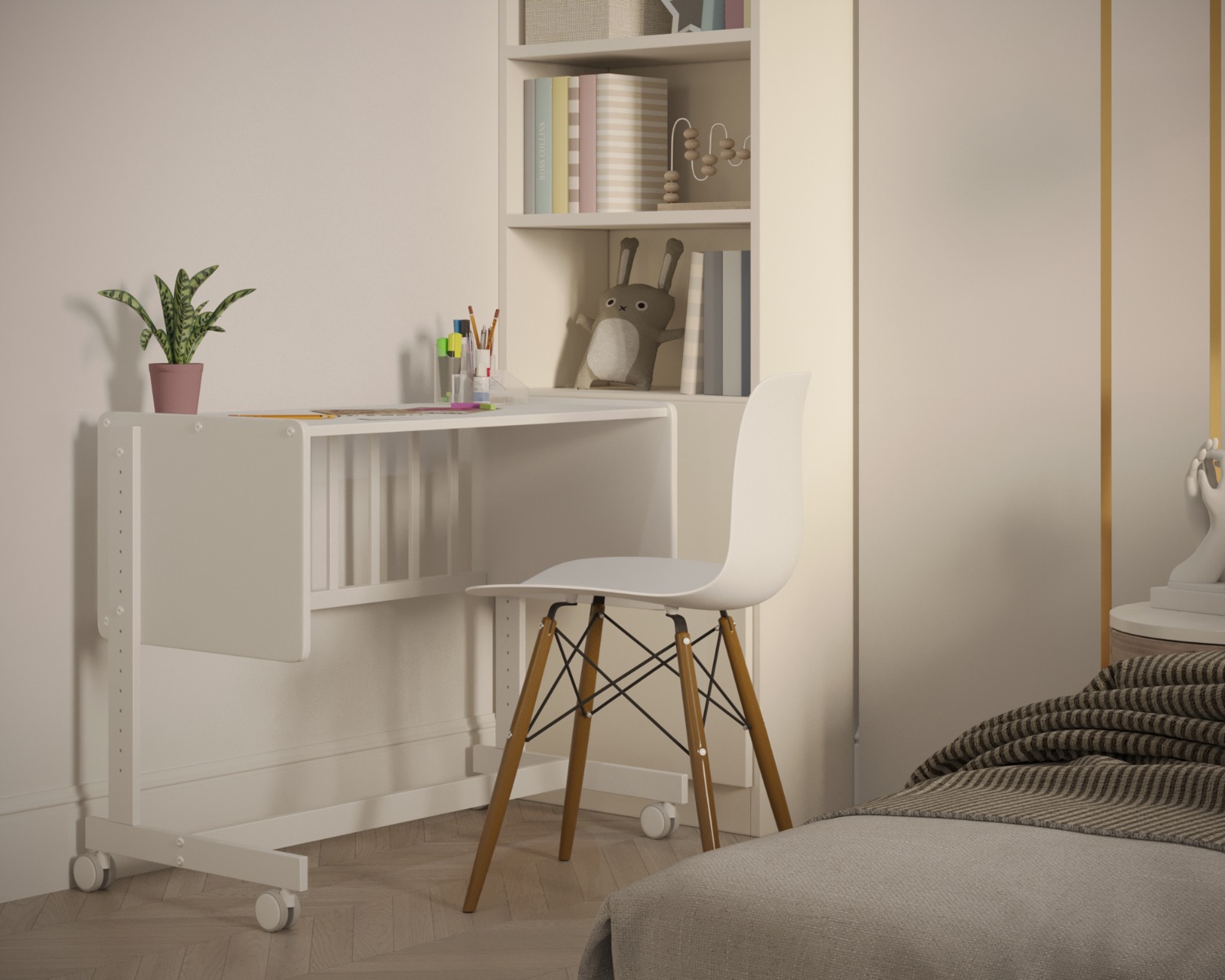Однако, благодаря уникальному дизайну и механизмам трансформации, она легко преобразуется в диванчик. Это идеально для более старших детей. Кроме того, кроватка может стать растущей партой для учебы и игр.