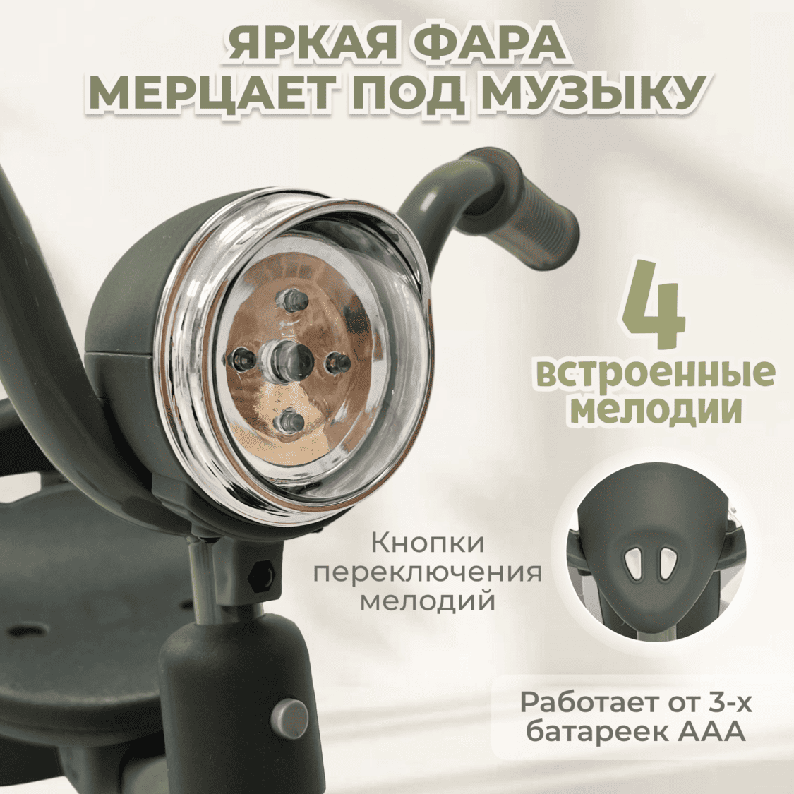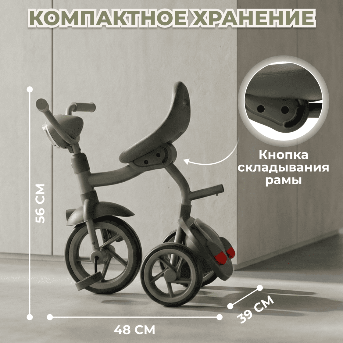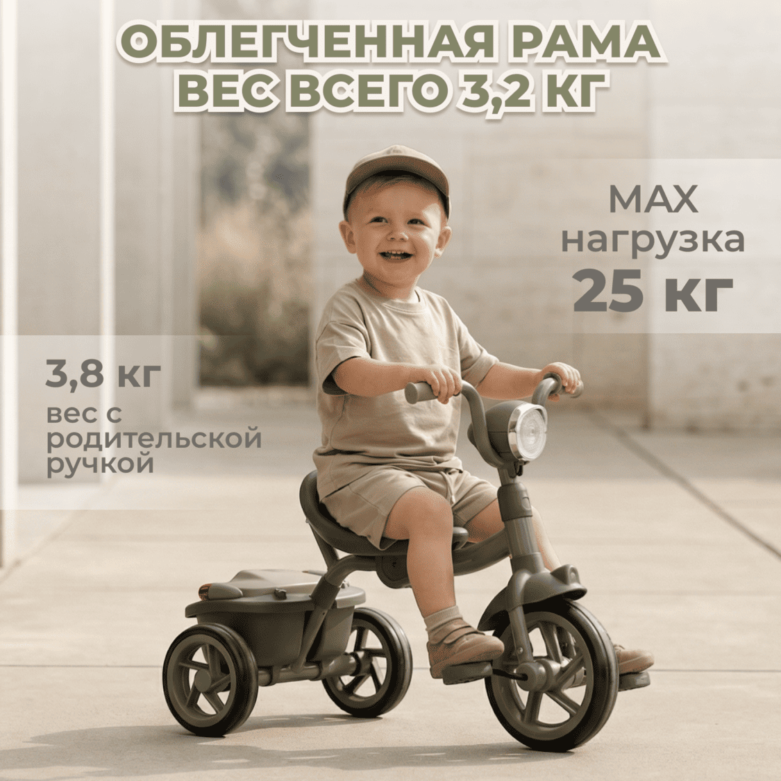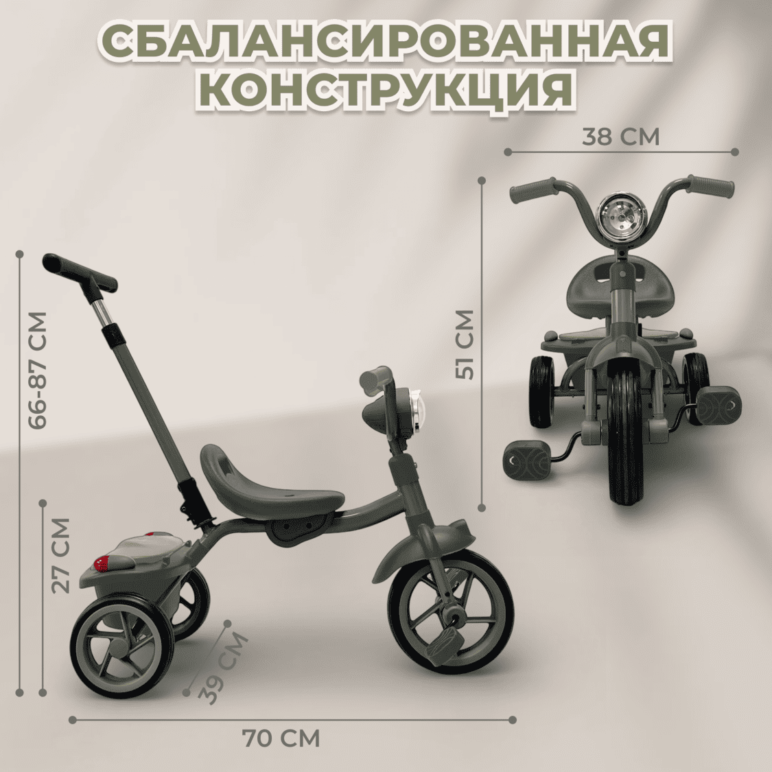 • Тип: детский трёхколёсный велосипед, складной, с родительской ручкой и фарой