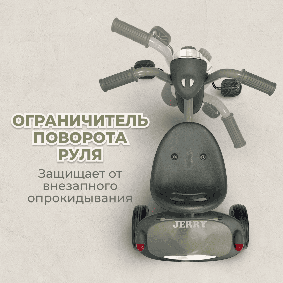 BubaGO Jerry — лёгкий складной трёхколёсный велосипед для детей от 1,5 до 3 лет, который станет идеальным первым транспортом для самостоятельных прогулок и активных игр. Он сочетает устойчивую конструкцию, небольшой вес и продуманные детали, чтобы каждая поездка была комфортной для ребёнка и удобной для родителей.