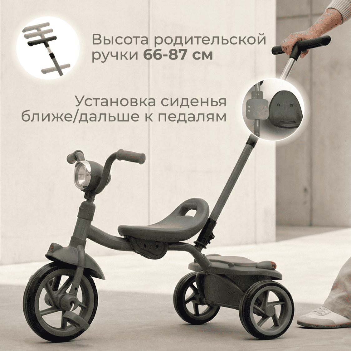 • В комплект входит съёмная родительская ручка с регулировкой по высоте 66–87 см — удобно подстраивать под рост взрослого.