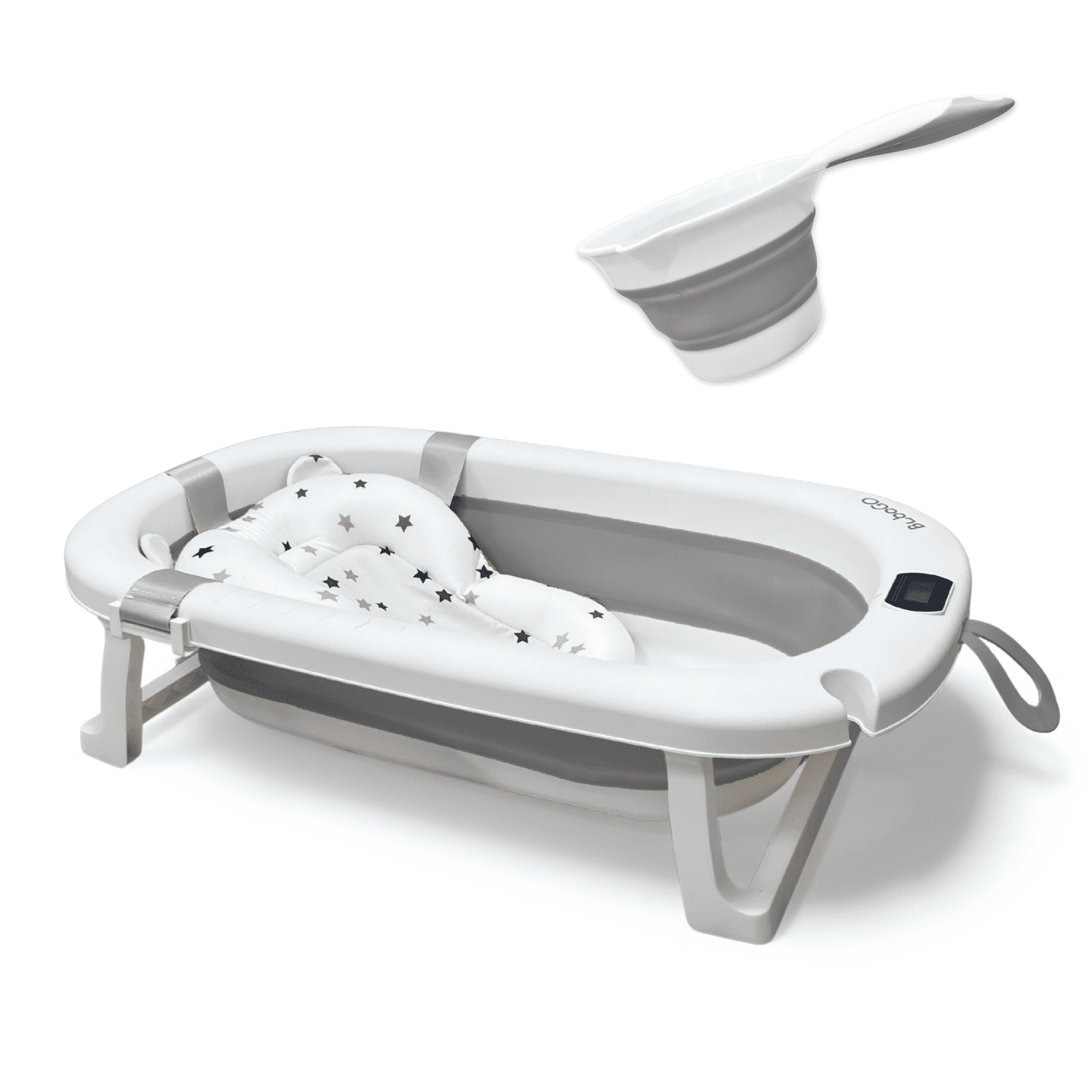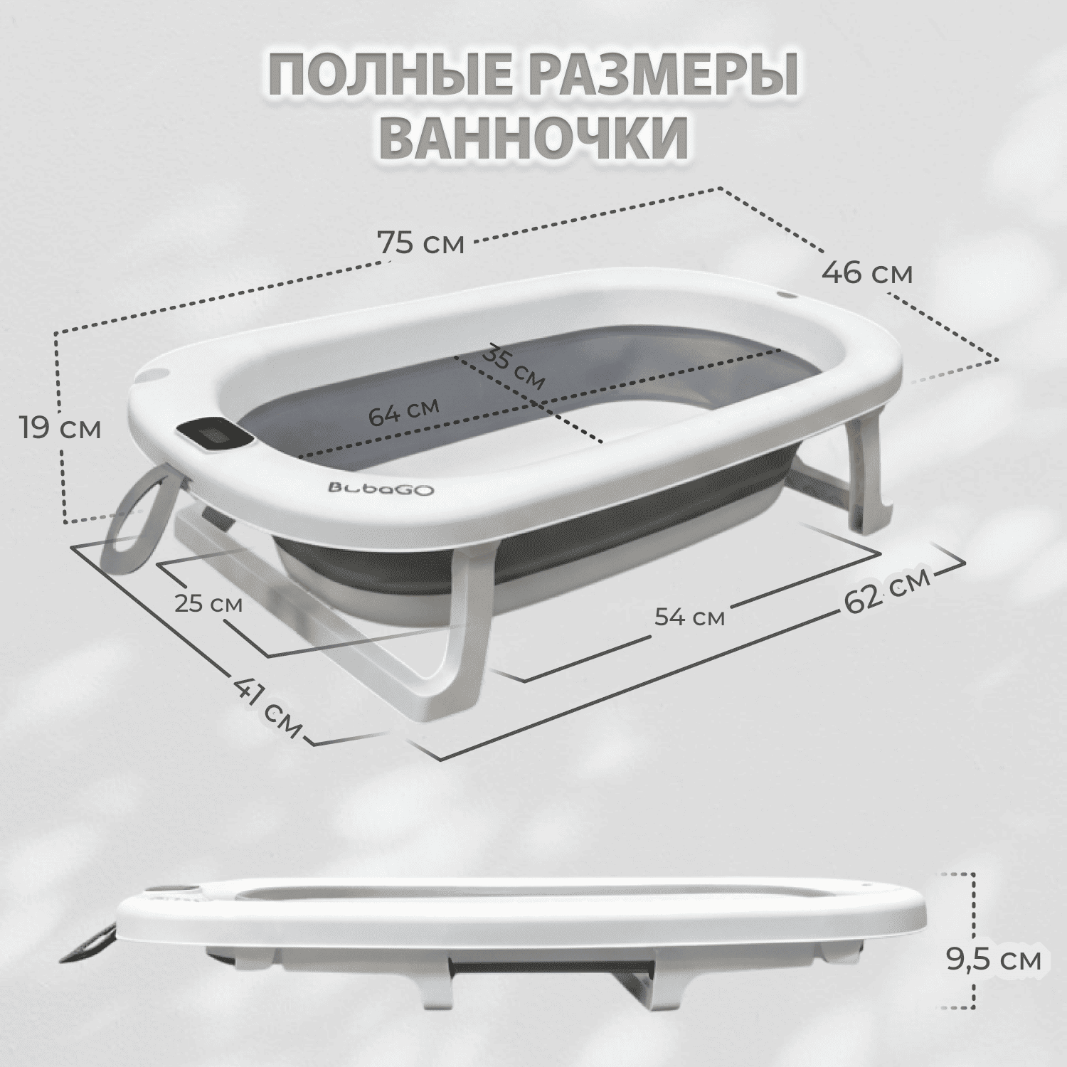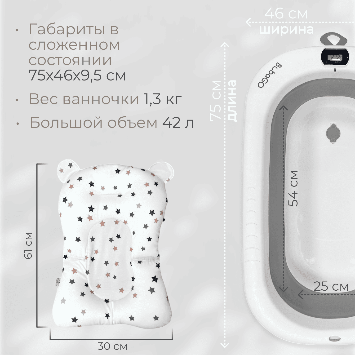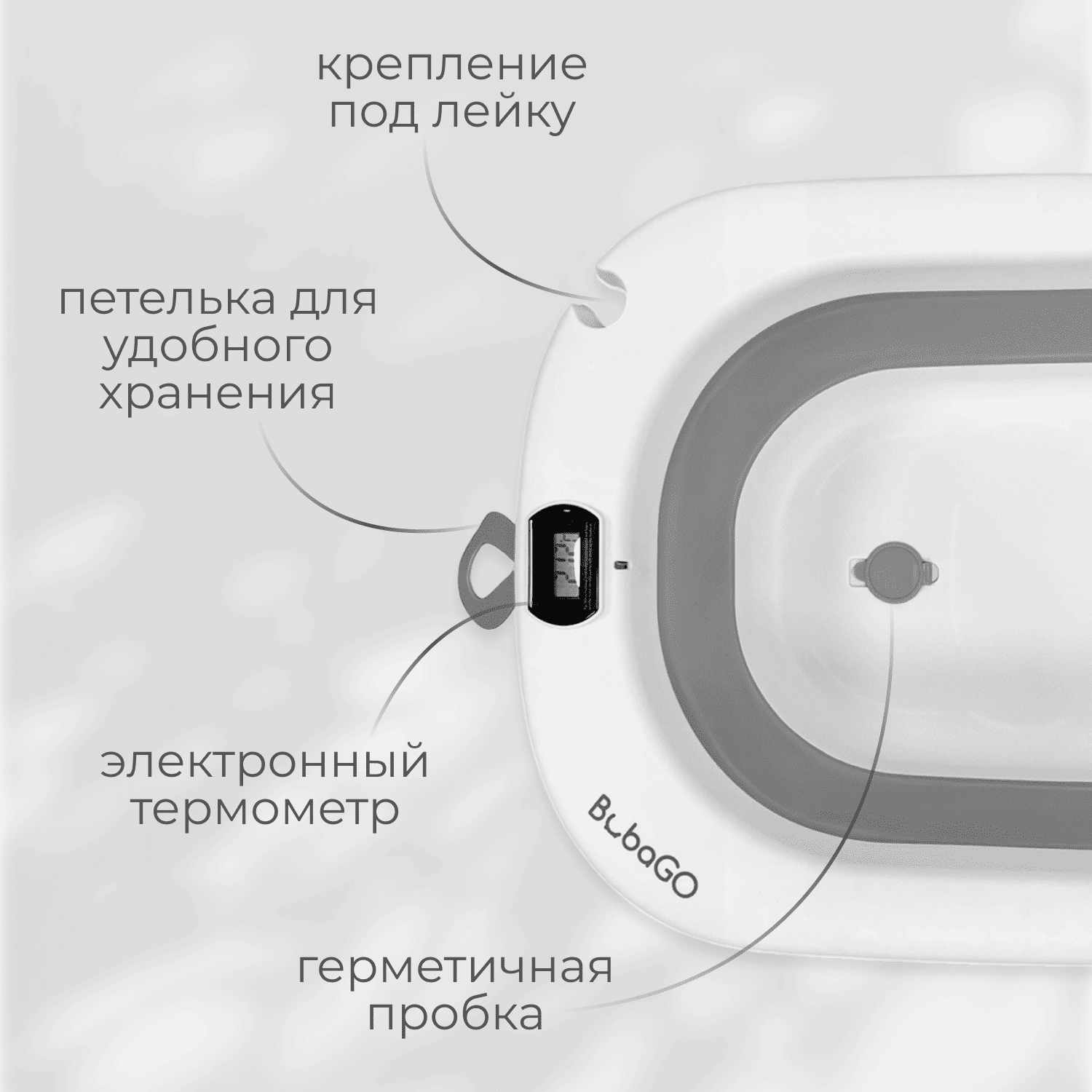 Ванночка для купания BubaGO Amaro — складная ванночка для новорождённых с термометром и гамаком-матрасиком, которая обеспечивает комфортное и безопасное купание малыша дома.