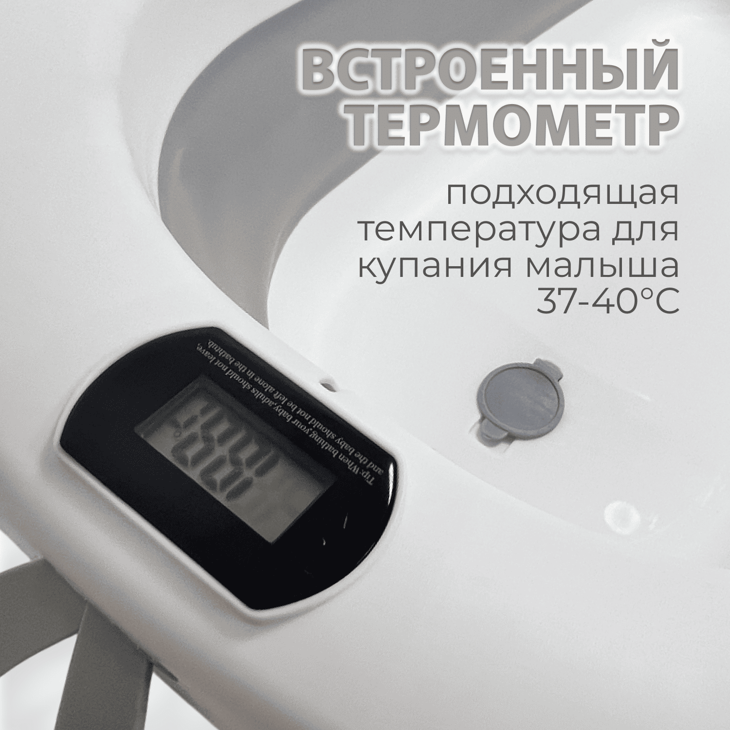 Встроенный сенсорный термометр показывает актуальную температуру, помогает подобрать комфортную воду для ребёнка.