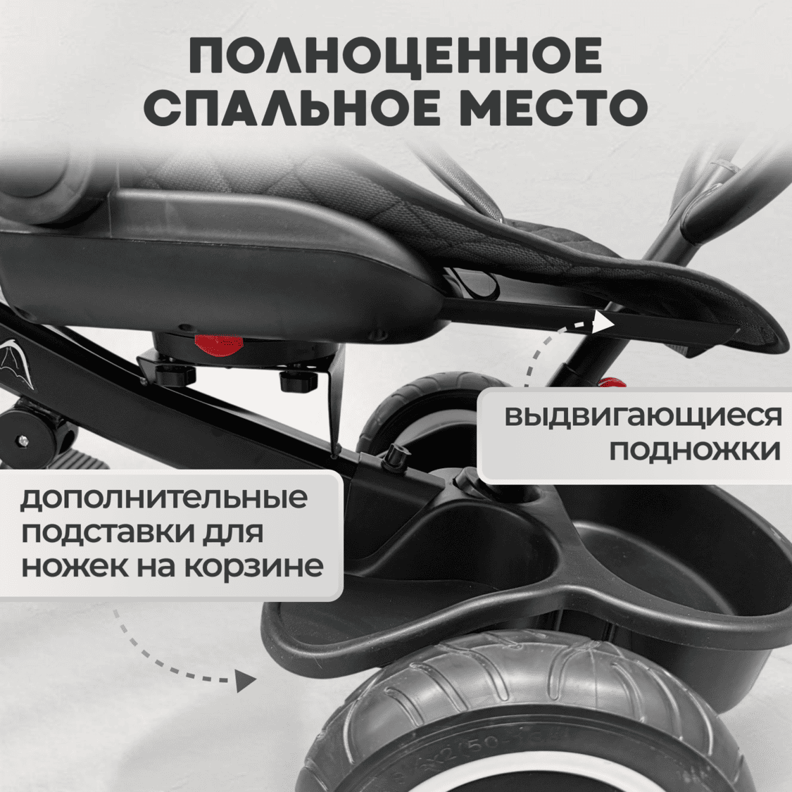 • Переднее колесо с защитой от попадания ножек малыша.