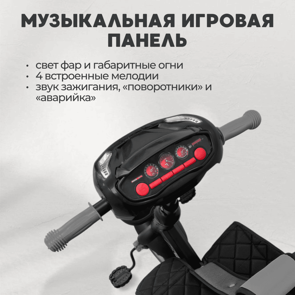 • Многофункциональная музыкальная панель со встроенными мелодиями.