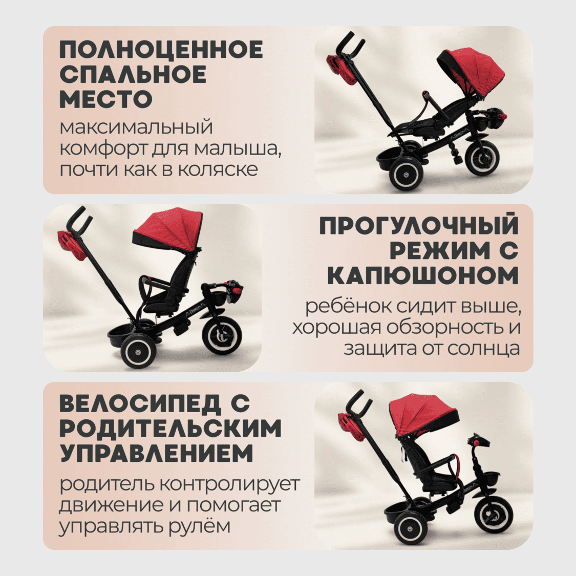 • 6-в-1: от удобного транспорта для малышей 6+ месяцев до классического трехколесного велосипеда для подросшего ребенка.