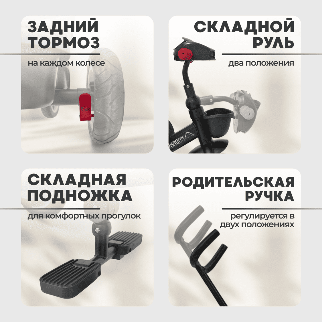 BubaGO Dragon — современный трехколесный велосипед‑трансформер 6 в 1, который «растет» вместе с ребенком и надолго заменяет прогулочную коляску. Он сочетает комфорт для малыша и максимум удобства для родителей при ежедневных прогулках в городе и на природе.